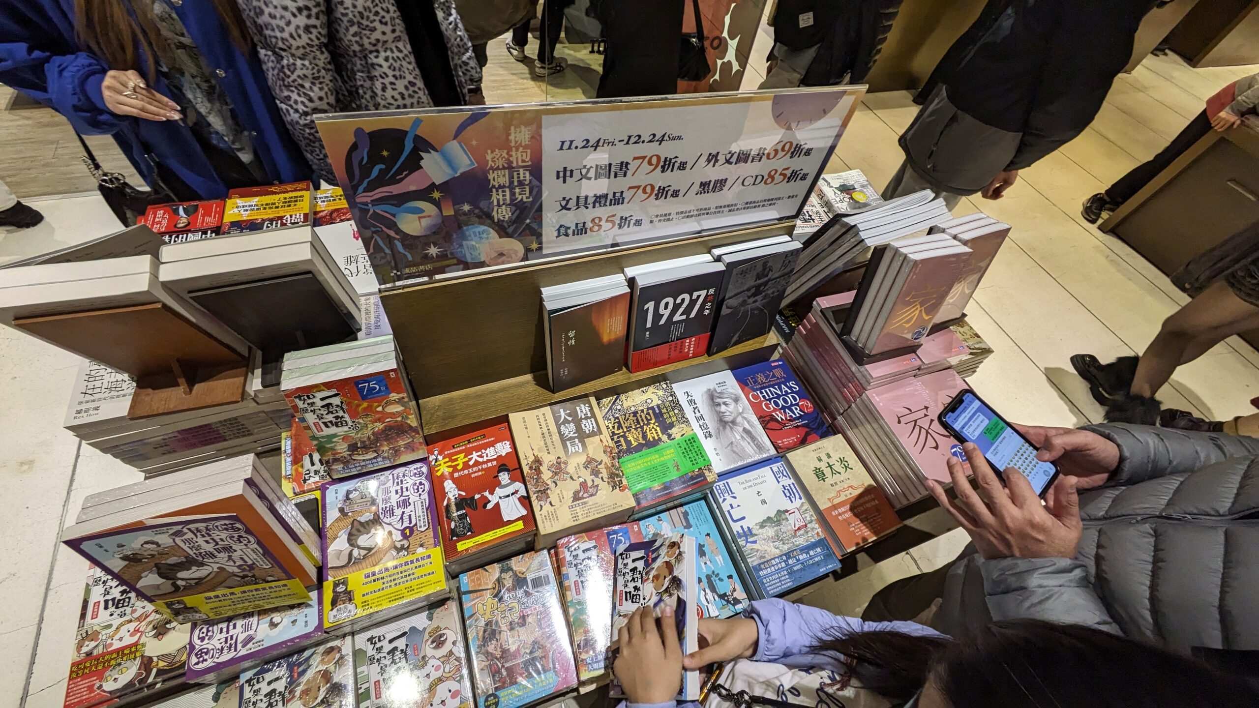 他在平安夜晚上8時許到誠品信義店打卡,緬懷2006年在博士後階段,獲得台灣國立清華大學第一屆中國研究獎學金,在台旅居一年經常都能眺望台北101的誠品書店打書釘。他感慨:「喺台灣一年,去誠品覺得佢哋啲書好齊,喺香港搵英文學術書好困難,自從馬國明老闆停辦灣仔曙光書店後,英文學術書好難搵。」