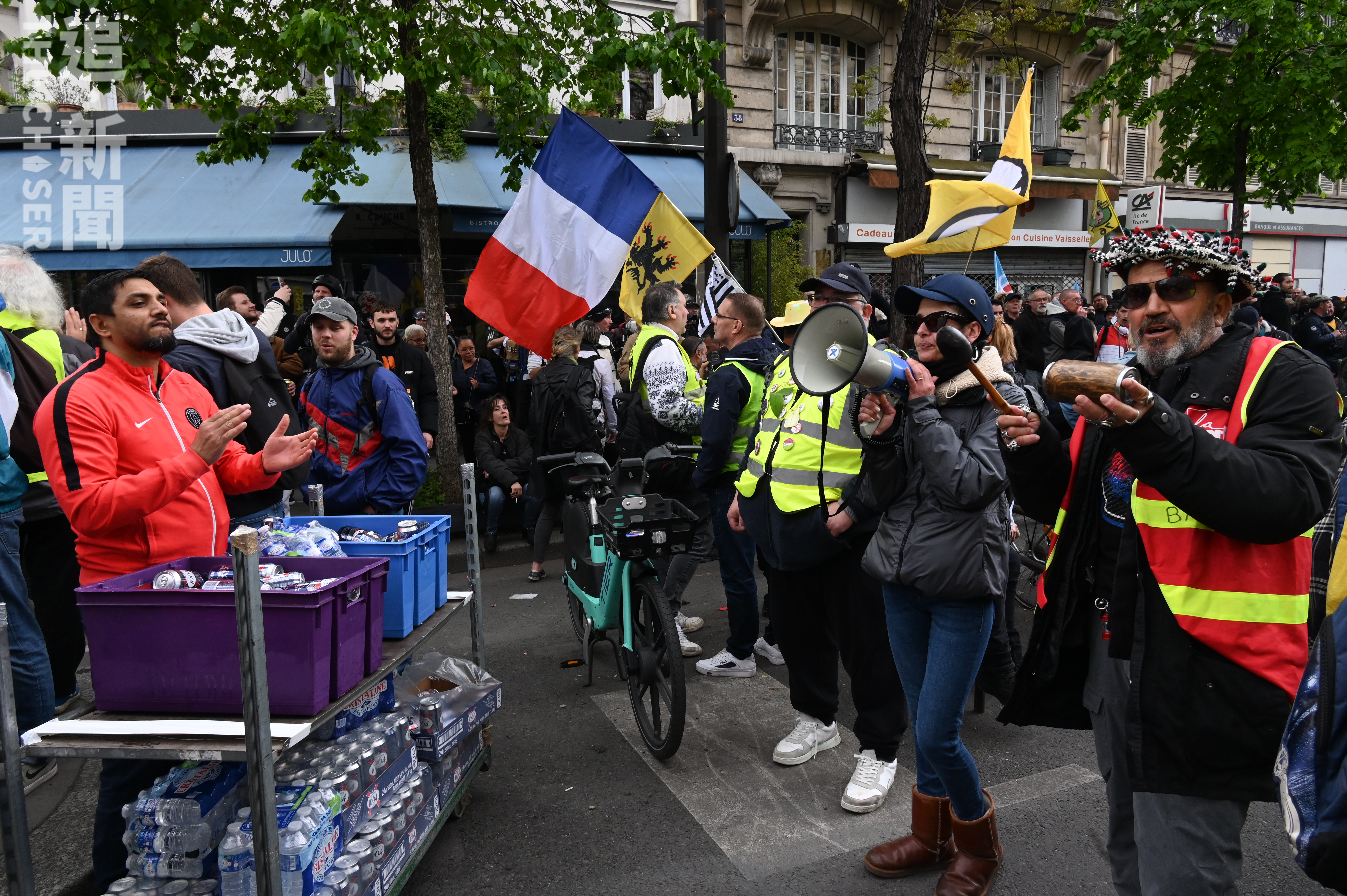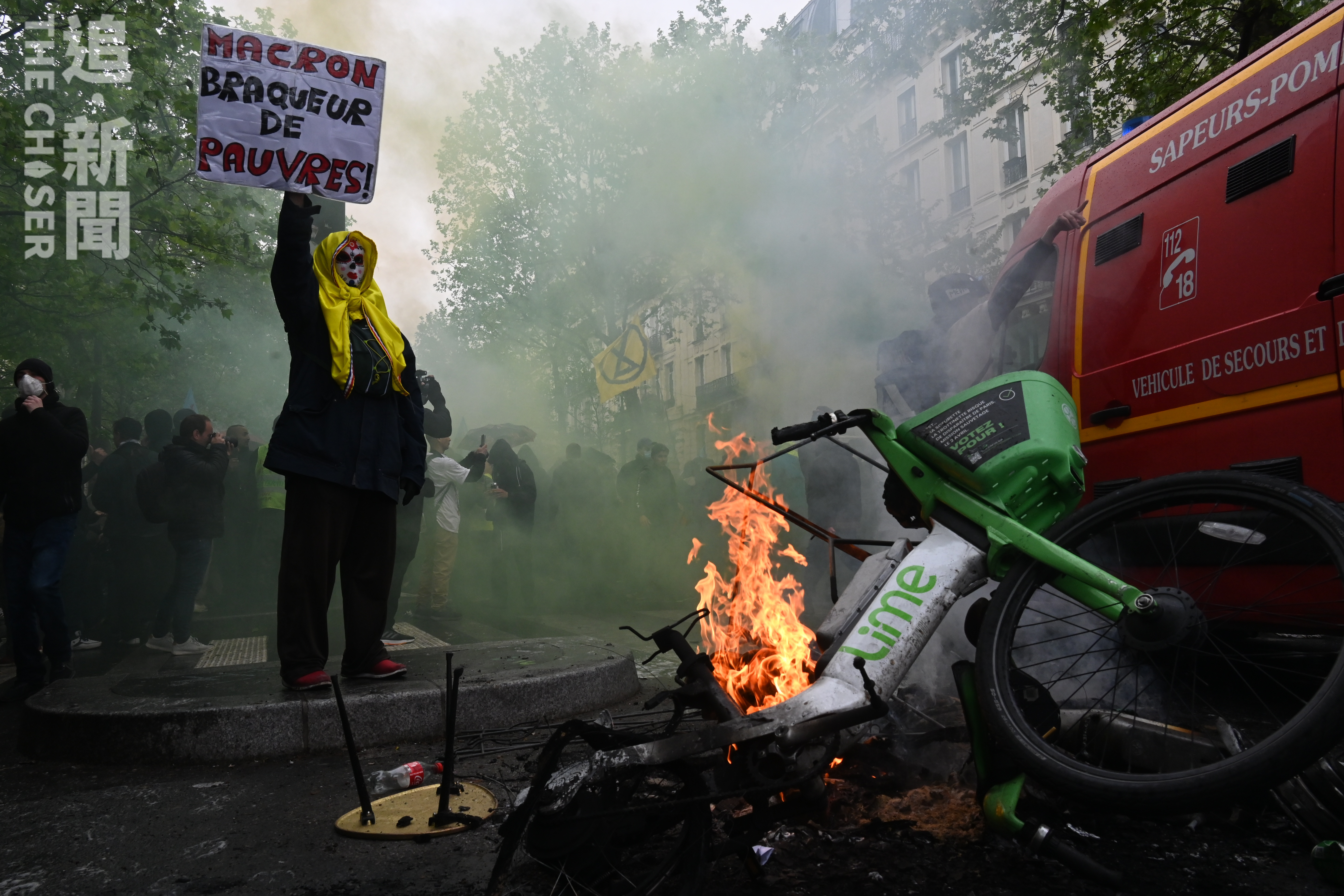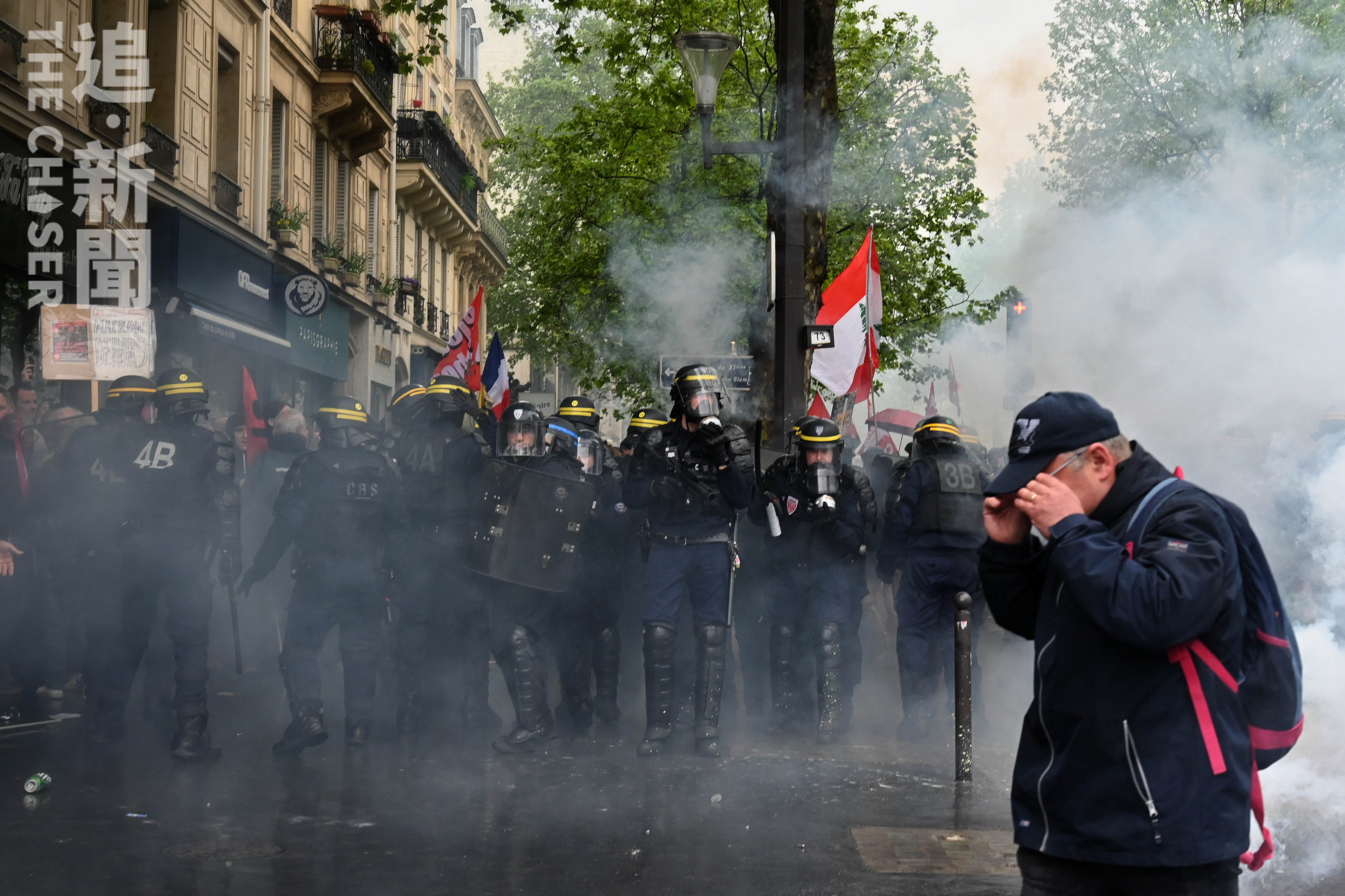 法國8大工會發起的五一大遊行在法國全國爆發,估計逾230萬人在不同城市上街抗議退休改革方案。《追新聞》記者在巴黎直擊,數以萬計示威者高喊「街道屬於人民」、「我們站出來,即使馬克龍不想見到我們」的口號,期間警方為了將遊行隊伍斷開,多次在無預警下向人群施放催淚彈及投擲震撼彈,大批無任何裝備的市民中招。有曾多次被捕的義務急救員說,自己地方只能自己救,「如果我們也不出來,就沒有人出來了。」