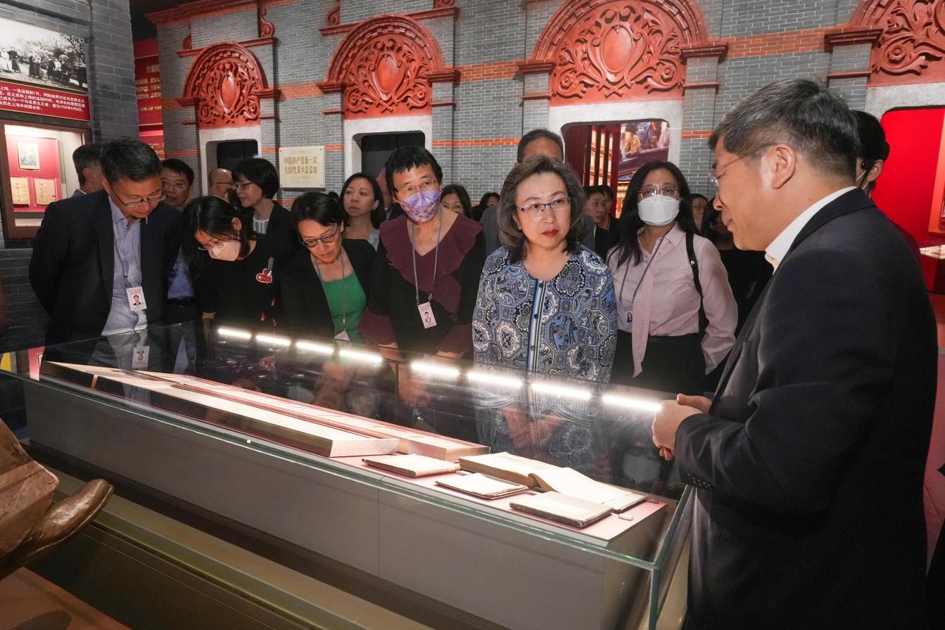 今次訪問大陸的22名高官,全部是港府常秘與部門首長級官員,除了楊何蓓茵本人,還有特首辦常秘鄭鍾偉、保安局常秘李百全、商務及經濟發展局常秘利敏貞、民政及青年事務局常秘林雪麗、教育局常秘李美嫦、文化體育及旅遊局常秘黃智祖、廣播處長張國財等人。眾人周日下午甫抵達北京,即獲安排前往朝陽區參觀中國共產黨歷史展覽館兩個半小時。