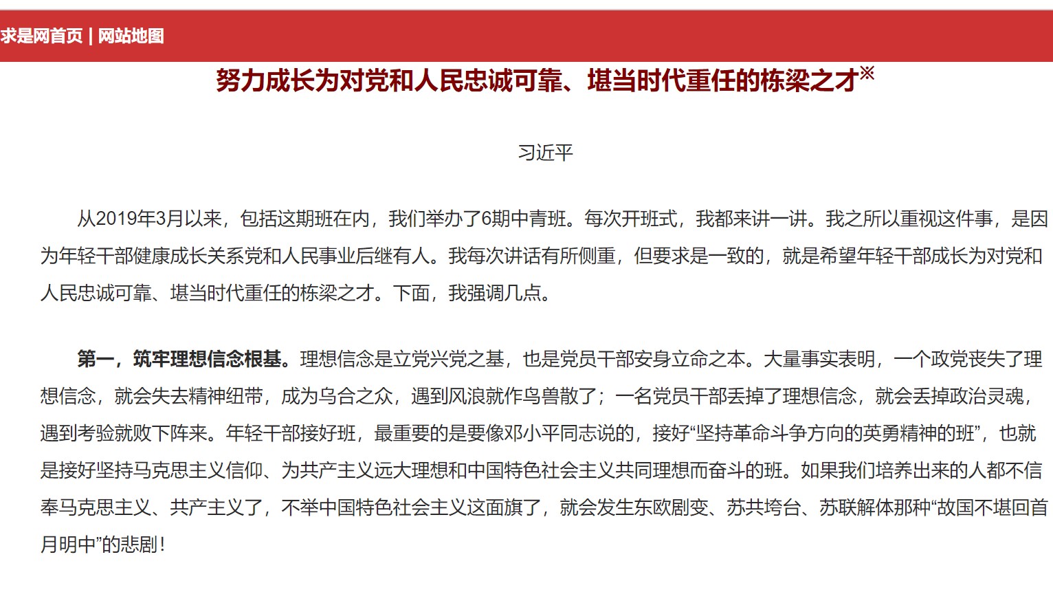 ▲中共黨媒《求是》近日重刊習近平的「亡黨亡國」訓話。