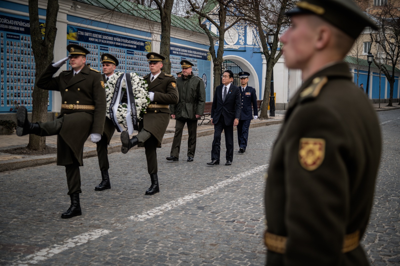 對於日本首相岸田文雄周二(21日)應烏克蘭總統澤倫斯基邀請訪問基輔,成為日本首位進入戰區的領導人。澤連斯基讚揚岸田是直正和強大的國際秩序捍衞者,也是烏克蘭的長期朋友,並答應今年5月透過視像出席日本廣島舉行的七國集團峯會。另外,澤連斯基稱,烏克蘭政府已建議中國加入烏方提出的和平方案,以結束俄烏衝突,但烏方仍在等待回覆。岸田文雄表示,日本將會通過北約的基金提供3,000萬美元,以協助烏克蘭購買非致命軍事裝備。 岸田文雄在會面前,曾到訪首都基輔市郊的布查鎮,他表示,對當地無辜平民被俄軍殺害感到相當憤怒。
