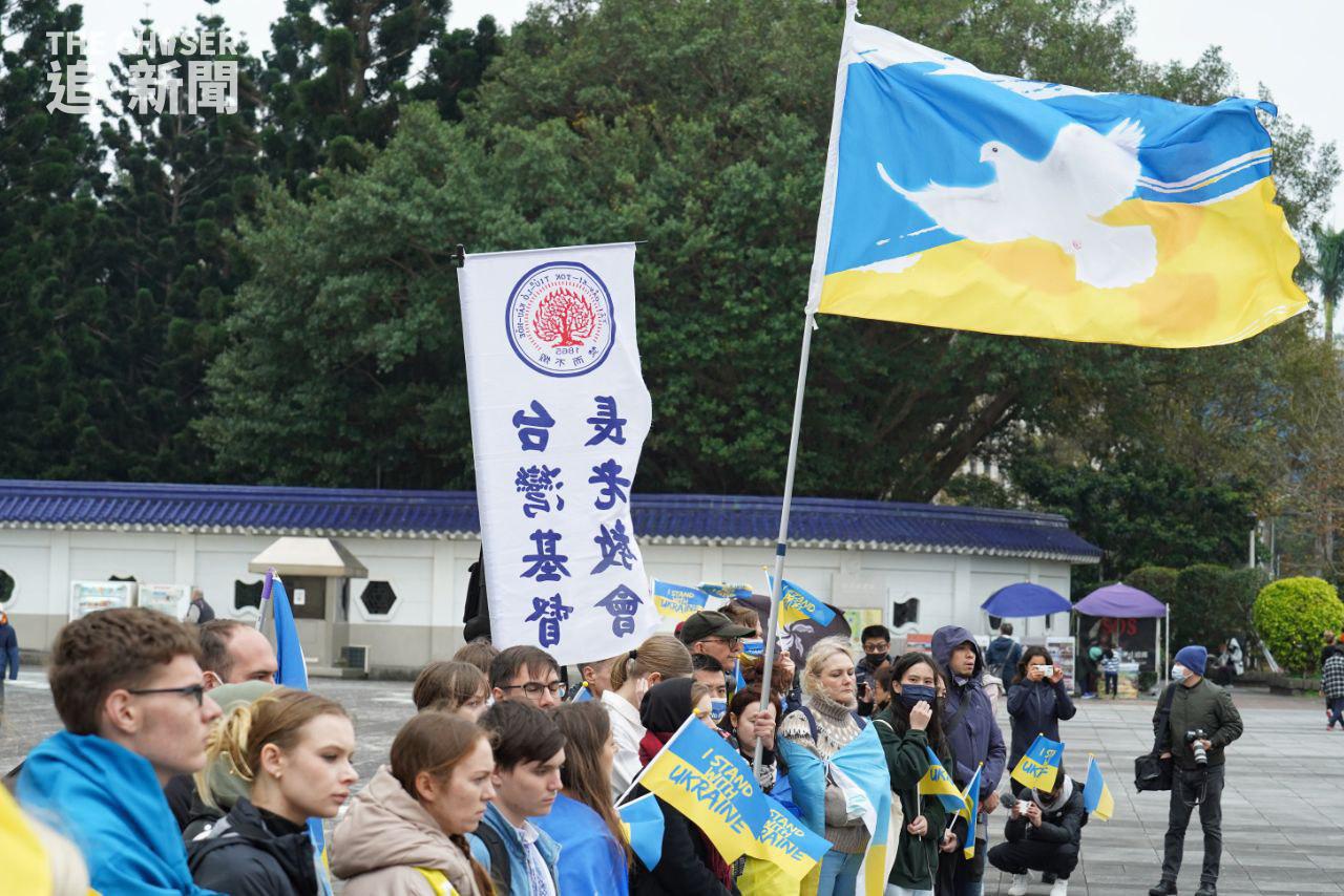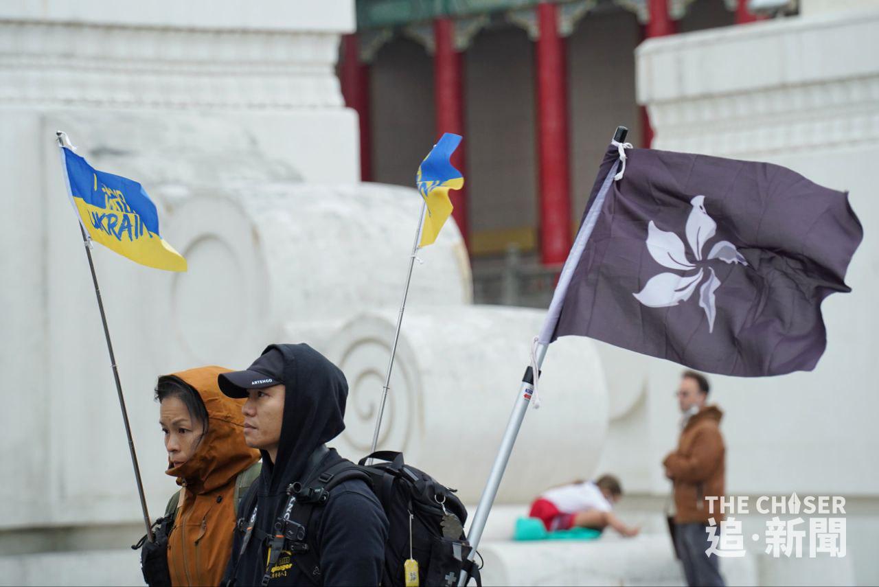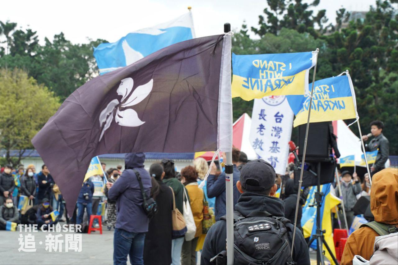 俄羅斯侵略烏克蘭戰爭上周五(24日)剛好一年,全球多處都有聲援烏克蘭的集會,包括同樣受到強鄰威脅的台灣。上周六(25日)下午2時,約200人在台北自由廣場冒着寒風,出席由民間團體「台灣烏克蘭陣線」舉辦的集會,主題為「戰火連綿.希望猶存,台灣與烏克蘭同在」(One Year Of Hope: Taiwan Stands With Ukraine)。多名在台烏克蘭人參與集會,有台灣高中老師帶領學生到場,亦有家長攜同年幼子女出席。身在台灣的香港反修例運動抗爭者、外號「赴湯杜火」的湯偉雄及杜依蘭也有參加集會,兩人在場揮動印有「I STAND WITH UKRAINE」的烏克蘭國旗,及代表一國兩制不斷凋零的黑洋紫荊旗。