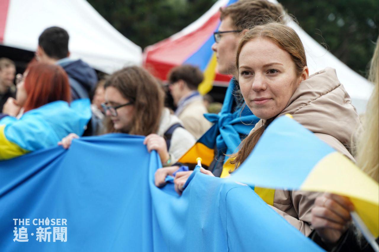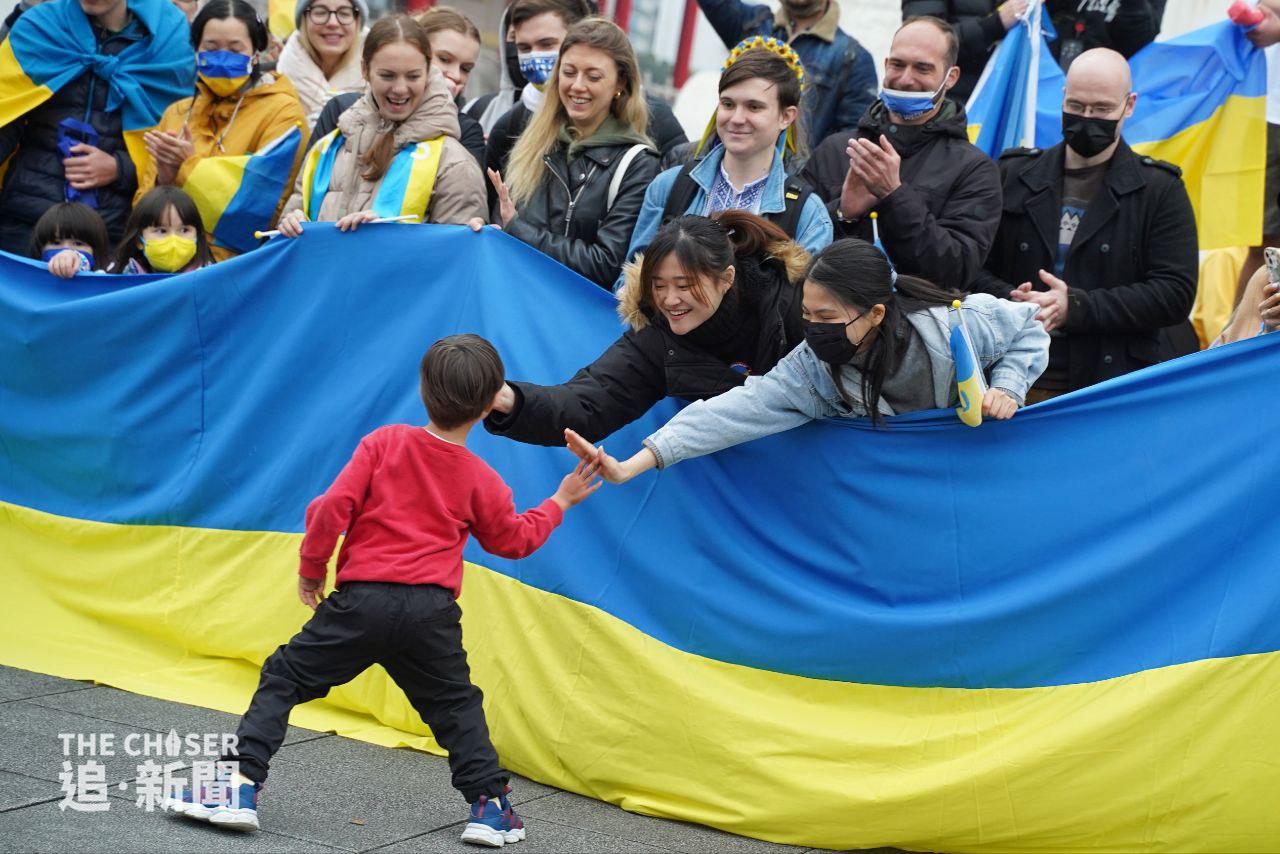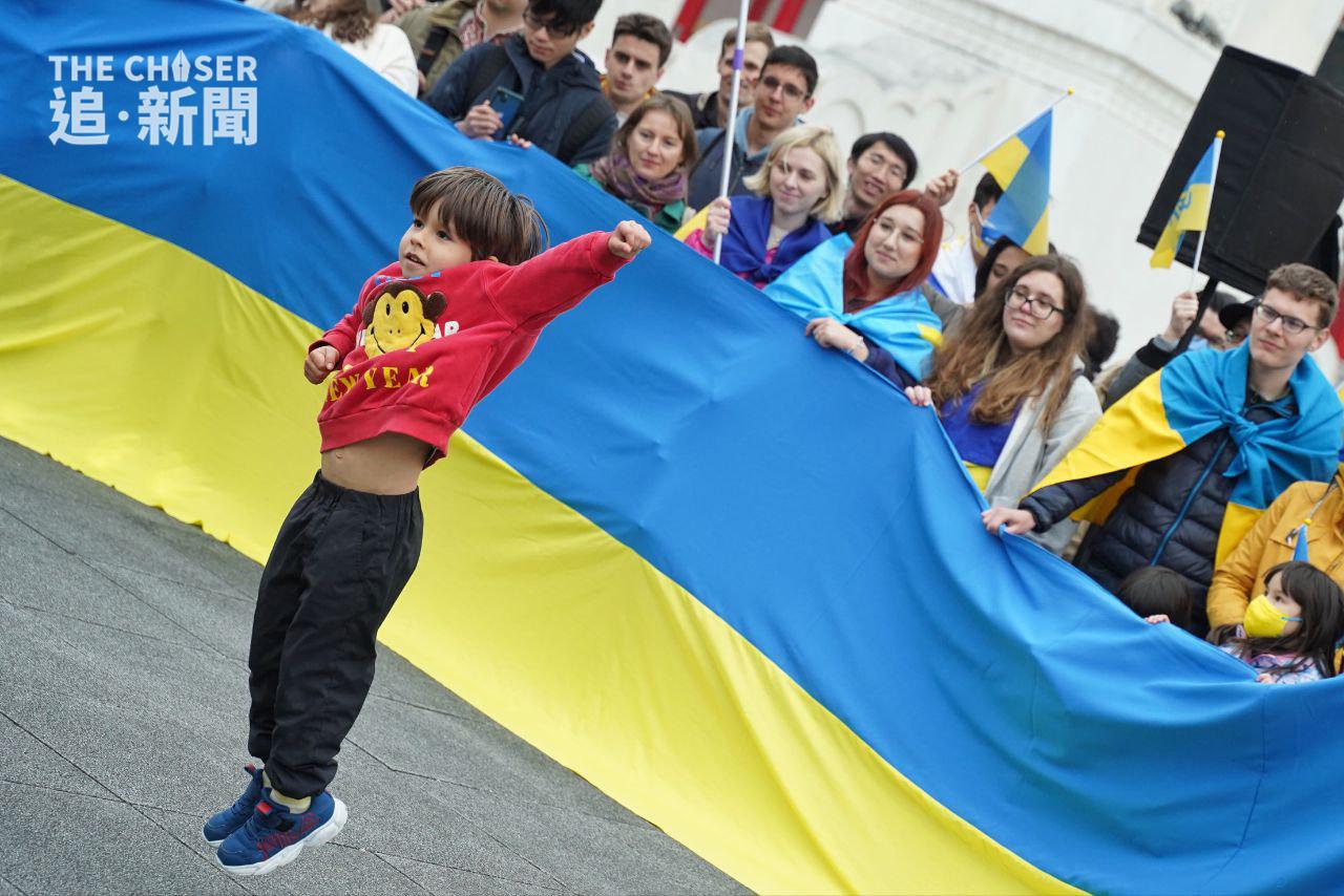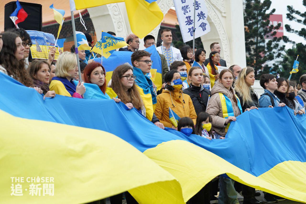 俄羅斯侵略烏克蘭戰爭上周五(24日)剛好一年,全球多處都有聲援烏克蘭的集會,包括同樣受到強鄰威脅的台灣。上周六(25日)下午2時,約200人在台北自由廣場冒着寒風,出席由民間團體「台灣烏克蘭陣線」舉辦的集會,主題為「戰火連綿.希望猶存,台灣與烏克蘭同在」(One Year Of Hope: Taiwan Stands With Ukraine)。多名在台烏克蘭人參與集會,有台灣高中老師帶領學生到場,亦有家長攜同年幼子女出席。身在台灣的香港反修例運動抗爭者、外號「赴湯杜火」的湯偉雄及杜依蘭也有參加集會,兩人在場揮動印有「I STAND WITH UKRAINE」的烏克蘭國旗,及代表一國兩制不斷凋零的黑洋紫荊旗。