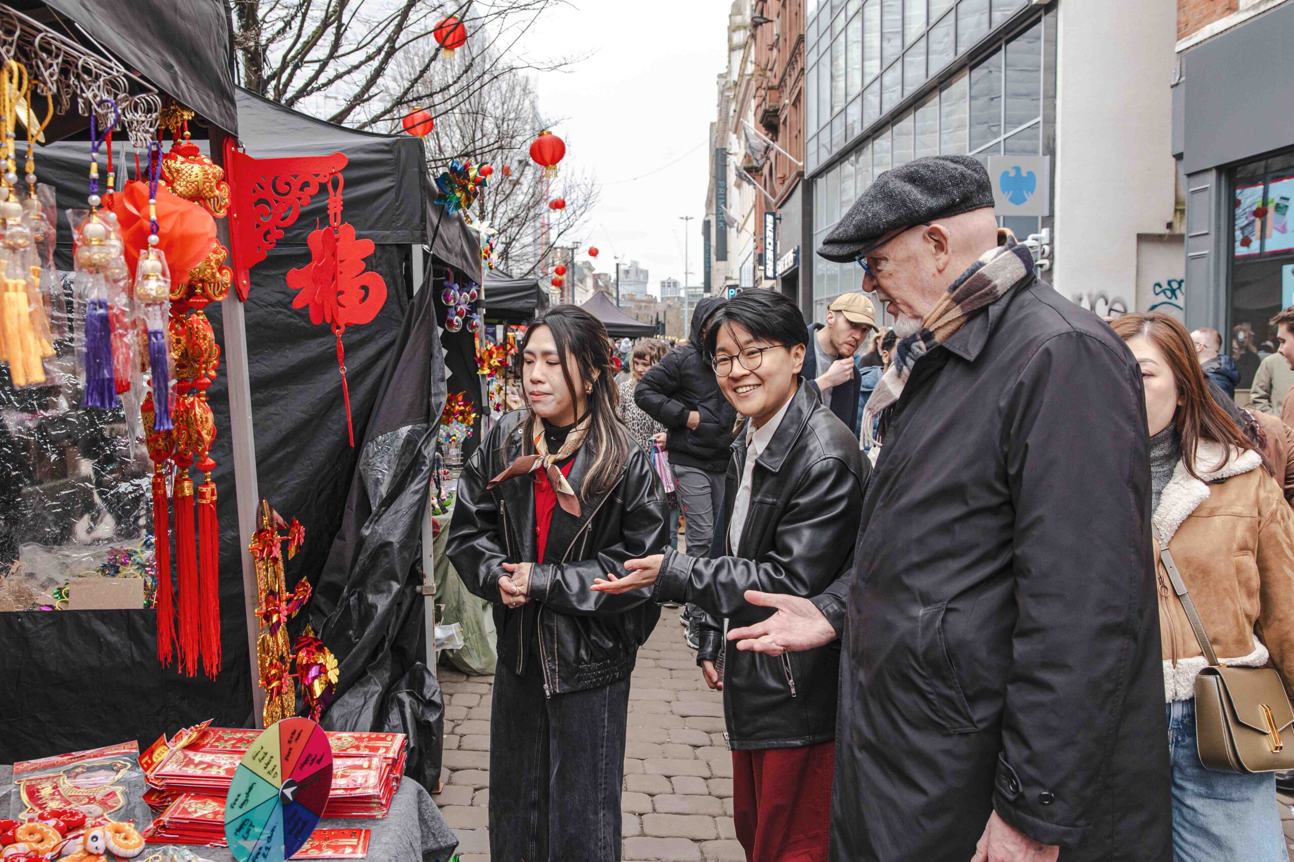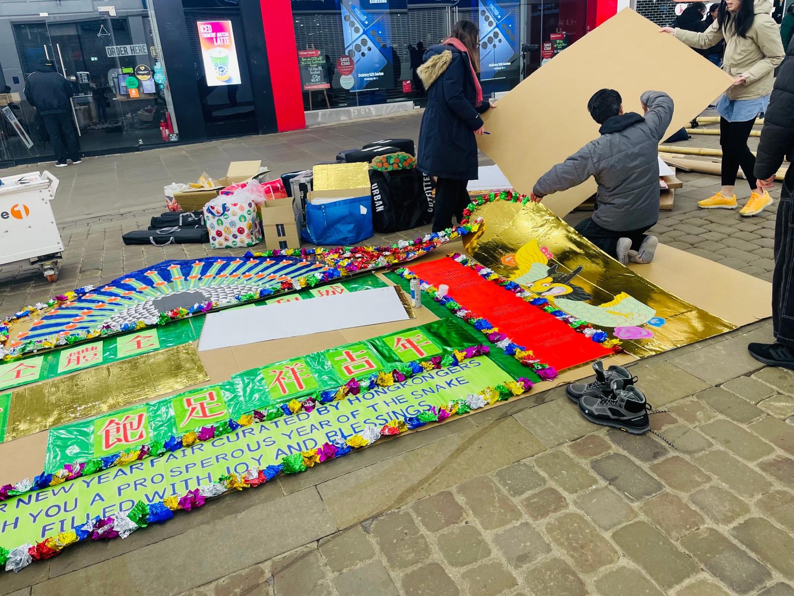 曼城和你宵|香港大紅花牌首次聳立英國   兩日約八萬人流趁墟   檔主重遇香港舊客感親切