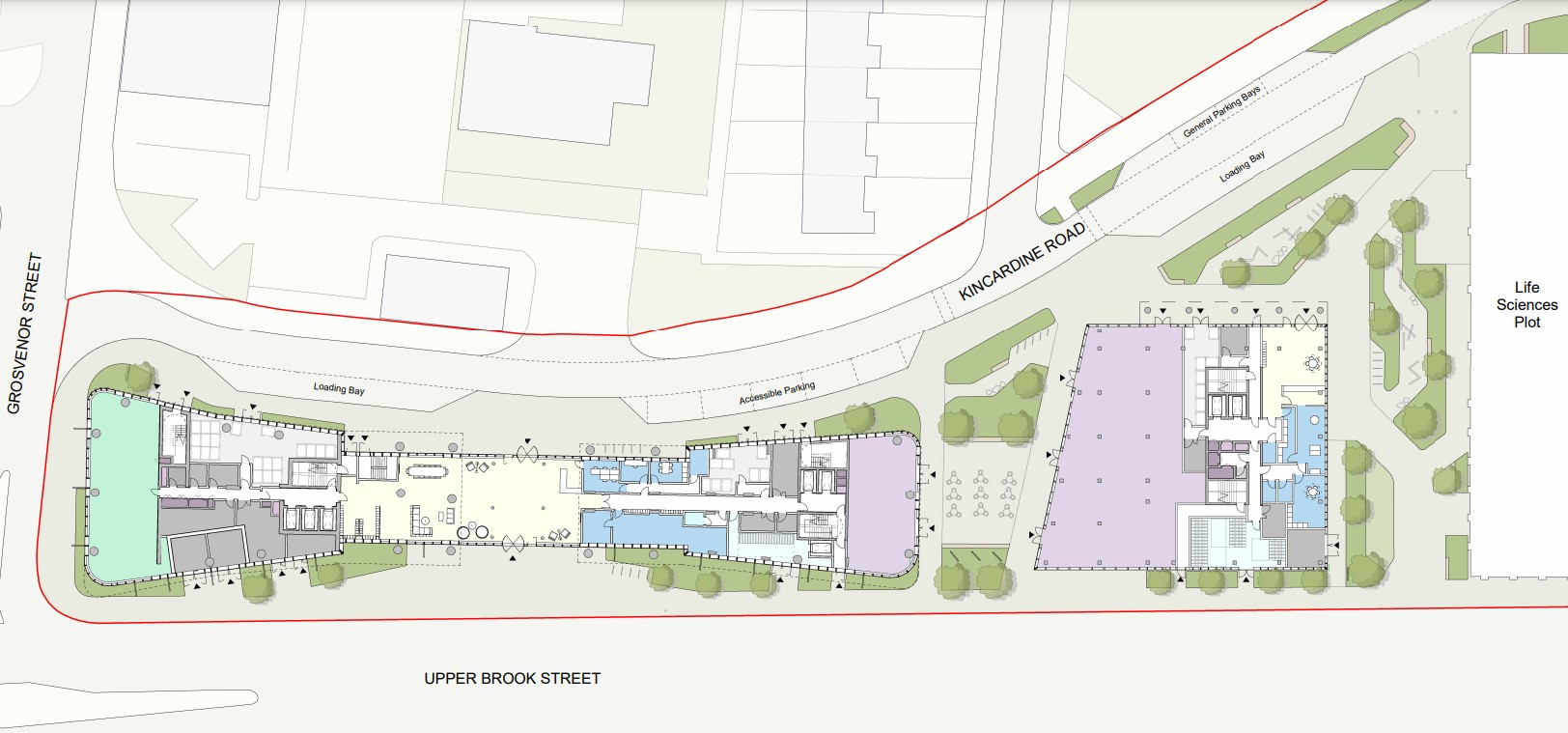 ▲由地產公司McLaren牽頭的計劃書建議,併購華人超市永興隆的地皮,興建學生宿舍及生物科學大樓。
