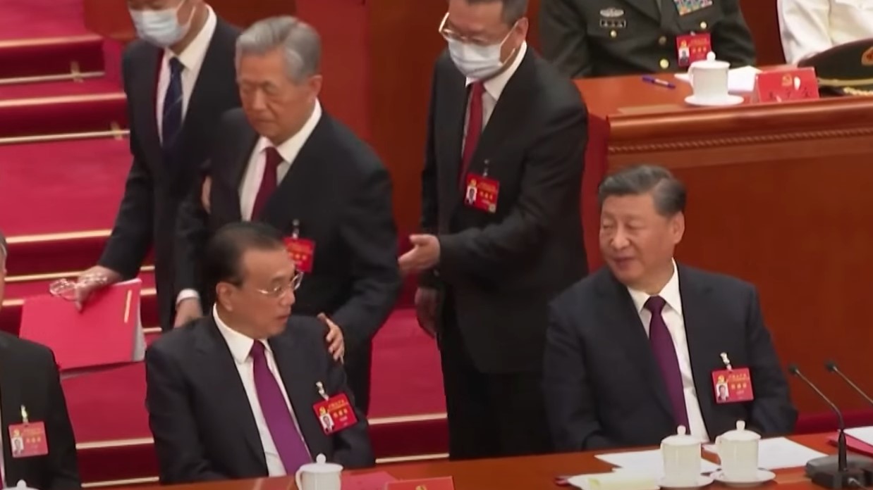 去年10月中共二十大閉幕禮,中共前總書記胡錦濤在台上被人強行「請」走,引起國際關注中共高層的激烈內鬥。胡錦濤在離場時特別拍了一下坐在習近平身邊的李克強手臂,原本木無表情的李克強亦立即有向胡大力點頭示意,並回頭目送胡被人帶離場,詎料一年後李克強就突然猝死。