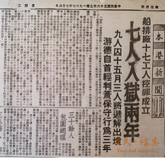 根據1967年7月4日《明報》報導,1967年6月1日早上八時,幾十名油麻地政府船排廠工人非法禁錮助理海事處長許雨時,要求他將被撕走的「反英抗暴」標語再度貼上。助理海事處長被禁錮在寫字樓直至晚上,工友要脅若不能再貼標語誓不罷休。,十七人控罪成立,自首的工友游德曾經揚言要「打死西人」,最後獲從經發落,判守行為三年。法官指任何人予人以非法扣留都是法所不容,犯此種罪行者,亦應受嚴重處分。最後十五名被告「被重判入獄十五個月,另付堂費二百元。無錢則加刑兩月,或二年。」這裡所謂「應受嚴重處分」,也只是15個月。