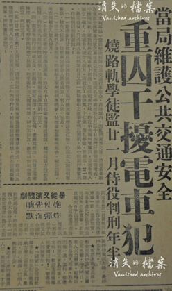 據1967年7月23日《明報》報導,十七歲的傢俬學徒張煥興,及廿一歲酒家侍役崔錦添,被控7月20日於灣仔修頓球附近堆放物件在電車軌上燃燒,阻礙電車行駛。法官指案情嚴重,將首被告「重囚」21個月,次被告入獄18個月。