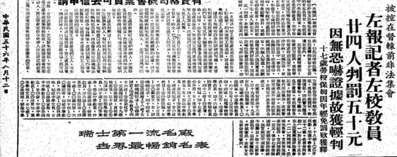 - 廿一歲工人黃家權被控「破壞宵禁」及「藏有兩張煽動性傳單」罪名成立,於北九龍裁判署被判入獄六個月。