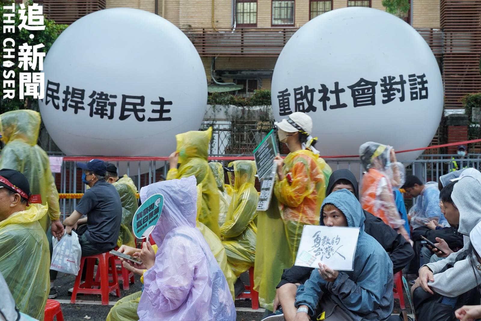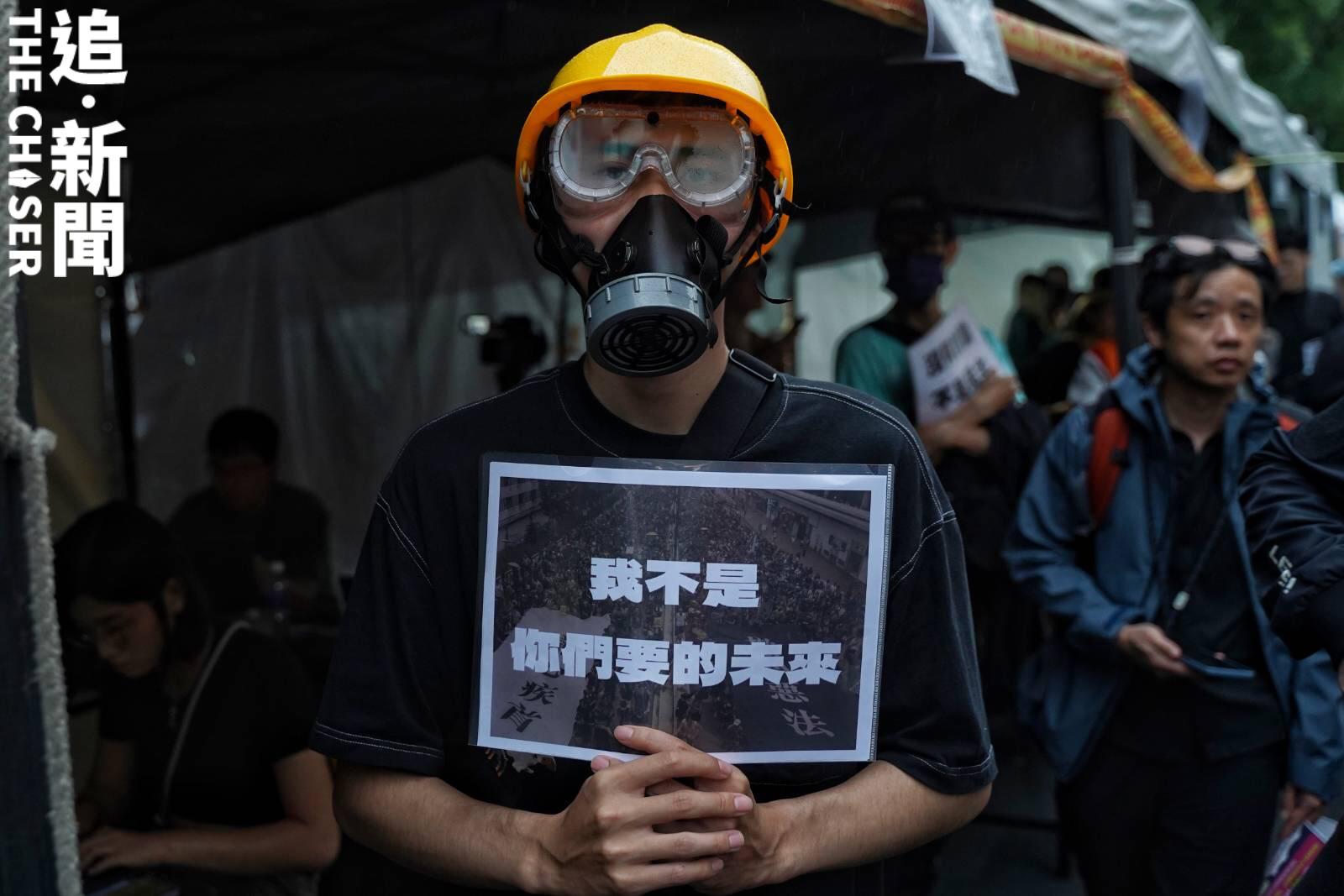 在台生活3年多,2019年後來台的「哪吒」(上圖右一),以「Black bloc」造型帶同光時旗到場,看到立院外大家以音樂、畫畫、靜坐等方式和平表達訴求,認為「有少少似2014佔中」,他想用香港抗爭者身份表達對民主支持,對於三讀通過,他認為「要諗吓嚟緊有咩做,21日有3萬人,24日10萬人,到今天,立委好似對人數無動於衷」,呼籲大家想想接下來有何行動。
