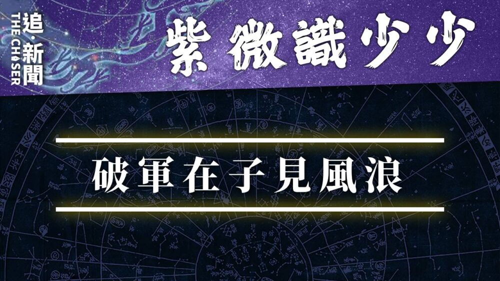 子位的破軍,是屬水的破軍,處於五行同屬水的子位而倍添動蕩,就像最前線的無名兵卒在險惡的江湖中,犯險作戰,危機處處,但因為這個子位破軍,同時擁有不成比例地宏大的福德宮(紫微天府),為了成就大業,在風浪中,有時不免孤注一擲。