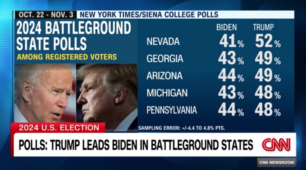 《紐約時報》指出,特朗普獲得年輕少數族裔票源,原因是他們認為特朗普能刺激經濟和保障國家安全,民調數字亦顯示特朗普在以巴衝突、經濟和移民等議題都獲選民信任,拜登只在墮胎議題有明顯優勢。