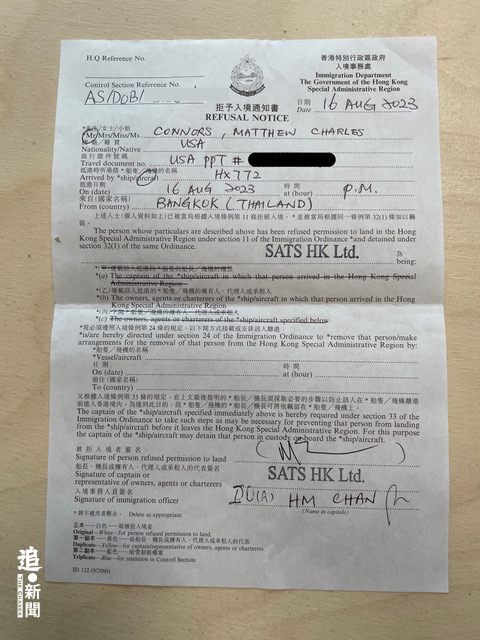 被遣返後,Matthew Connors坦言沒有任何機構和組織聯絡他,而2020年被拒入境時,他曾向移民律師、美國大使館、香港記者協會講述他的遭遇,但得來的反饋是,當他被扣查時也無能為力,因為香港政府有權控制出入境,而因為疫情期間,原本與美國移民律師的溝通也無奈暫時中斷。