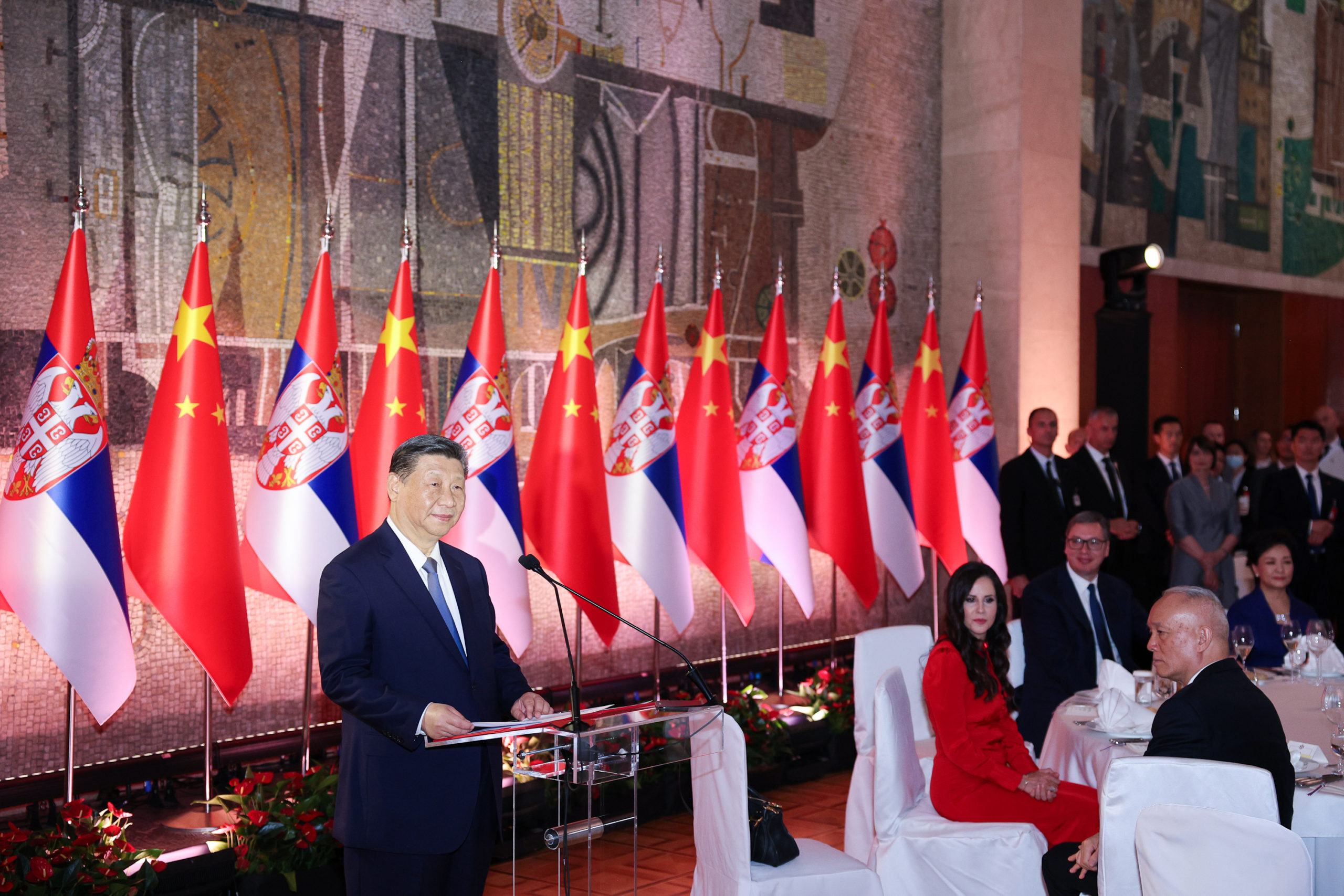習近平在塞爾維亞訪問期間獲高規格接待,總統武契奇(Aleksandar Vucic)不但重申「台灣屬於中國」,還稱讚習總作為強權國家領袖,在全球都備受尊崇,「在塞爾維亞獲得的欽仰與愛,在其他地方都找不到。」昨午的國宴上,武契奇親自為習總倒酒,以感謝中國在過去5年對塞爾維亞葡萄酒入口「零關稅待遇」。他接受央視專訪時笑言:「他們(中方)把菜單更改了3次……我會親自給習近平倒酒,不用侍應、也不用禮賓師,由我親自款侍他,我相信他一定喜歡。」