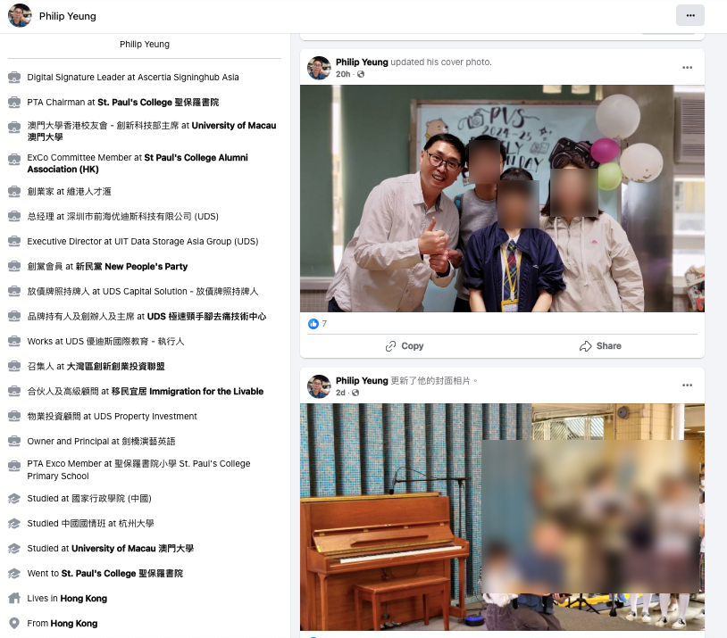 - ▲聖保羅書院家教會主席楊文達Facebook。