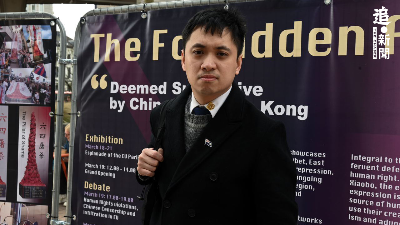 丹麥藝術家高志活聯同海外香港藝術策展機構「我地」周二(19日)在歐洲議會舉行展覽,多名流亡香港社運人士及歐洲議會議員出席開幕禮。
