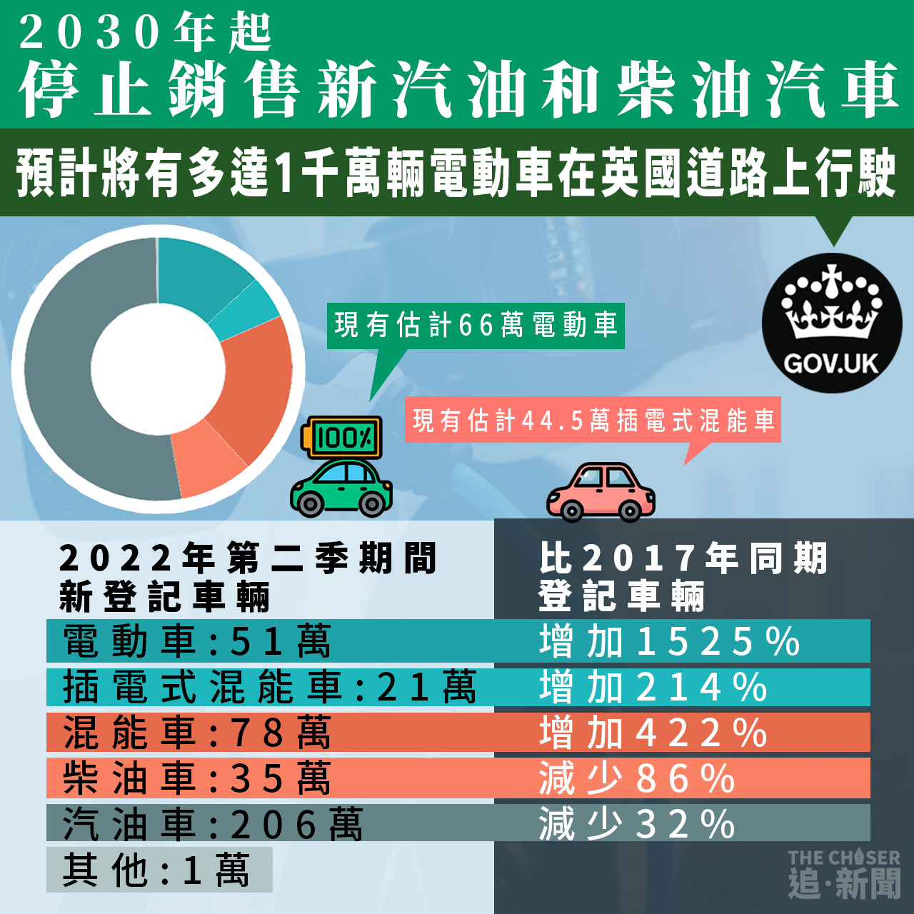 - 英國電動車銷量趨勢在近年持續上升,2022年上半年售出的新車中有五分之一便是電動汽車。