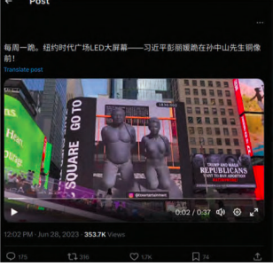 惠波洛杉磯展示習夫婦跪像場地遭刑毀