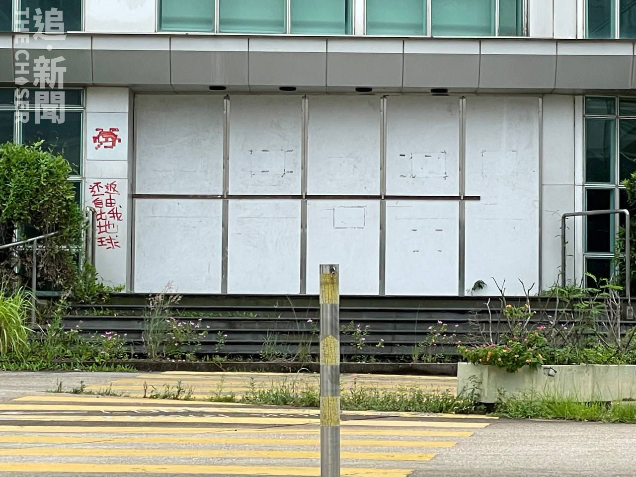 《追新聞》特約記者日前走訪將軍澳工業邨,未見港警在場部署,蘋果大樓大堂仍有開燈,正門已用圍板封起。經歷過2014年雨傘運動《蘋果》被圍;2018年超強颱風山竹吹襲將軍澳頓變「明日之後」;2020年8月國安警搜查壹傳媒大樓;直至2021年6月17日,國安警以「串謀勾結外國勢力」拘捕壹傳媒董事和高層,凍結《蘋果》資產,創刊26年的《蘋果》戛然而止。