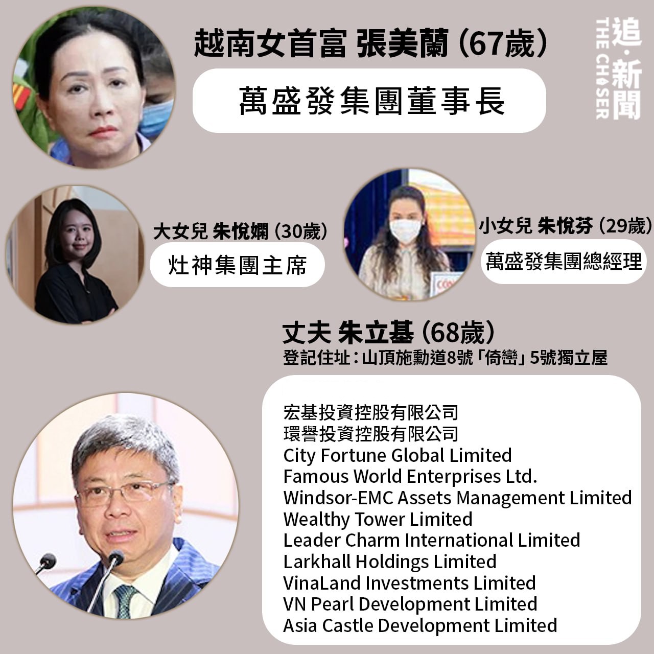 張美蘭作風低調,旗下公司萬盛發集團(Van Thinh Phat)為越南最大房地產企業,從未上市,外界不知道她身家有多厚。兩夫婦被捕前已嗅到異樣,急忙將香港等地的海外資產轉移到女兒名下。這場越南版「金手指」與香港富商扯上關係,究竟張美蘭如何由賣化妝品攤販搖身一變成為地產女強人?全家如何利用香港居留權擴展企業版圖?《追新聞》為讀者拆解越南女首富背後點石成金之謎。