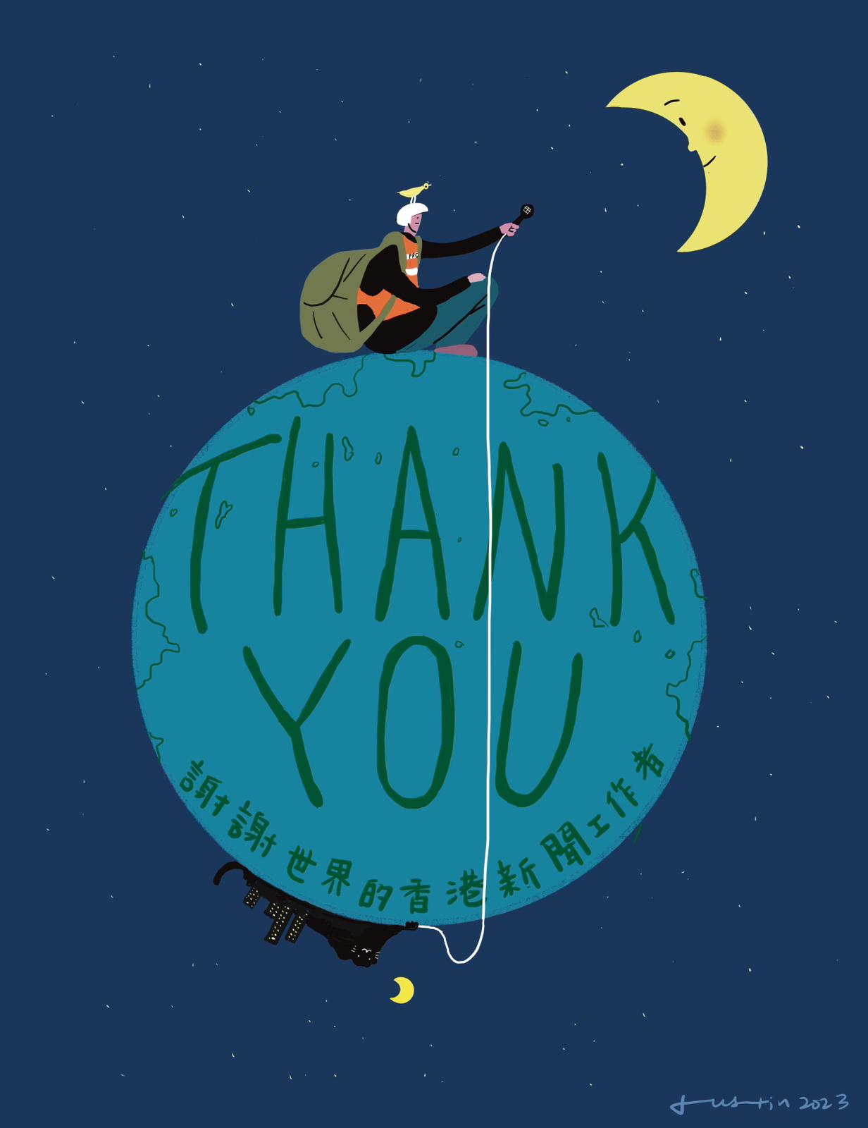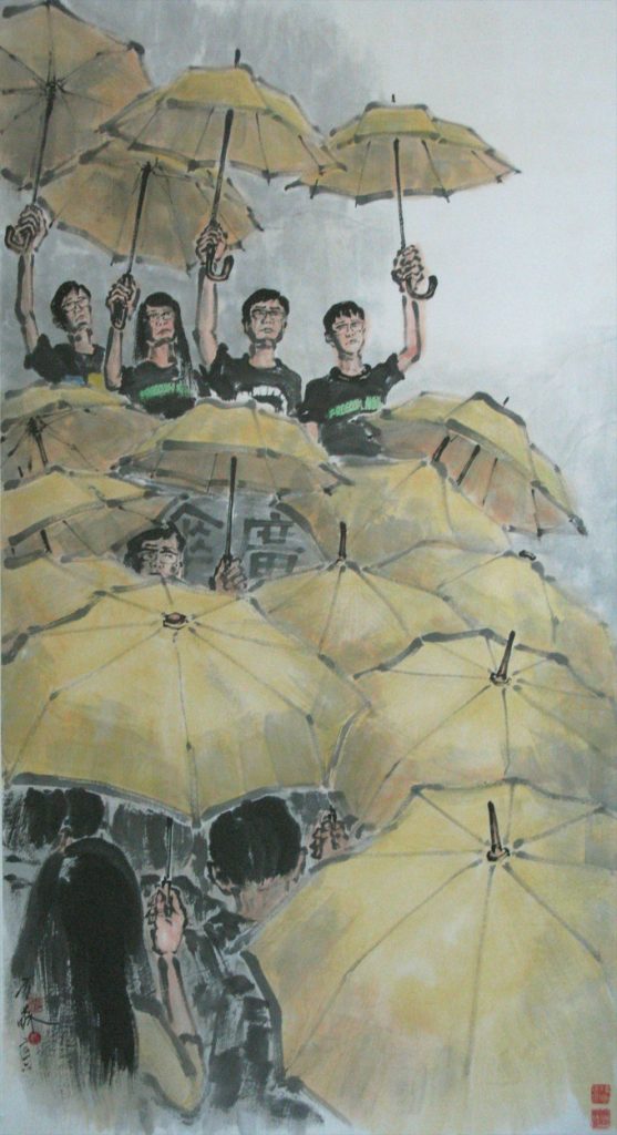 因此,香港九七移交後的社會事態,往往成了我的繪畫題材。也因為這種選材傾向,我經常是半個記者,每有抗爭運動,都盡可能走出來,到現場作點採攝,實地感受一下社會的脈搏。對於從事新聞工作的人,包括老中青幾個世代,我總覺得自己與他們有如是「命運共同體」。