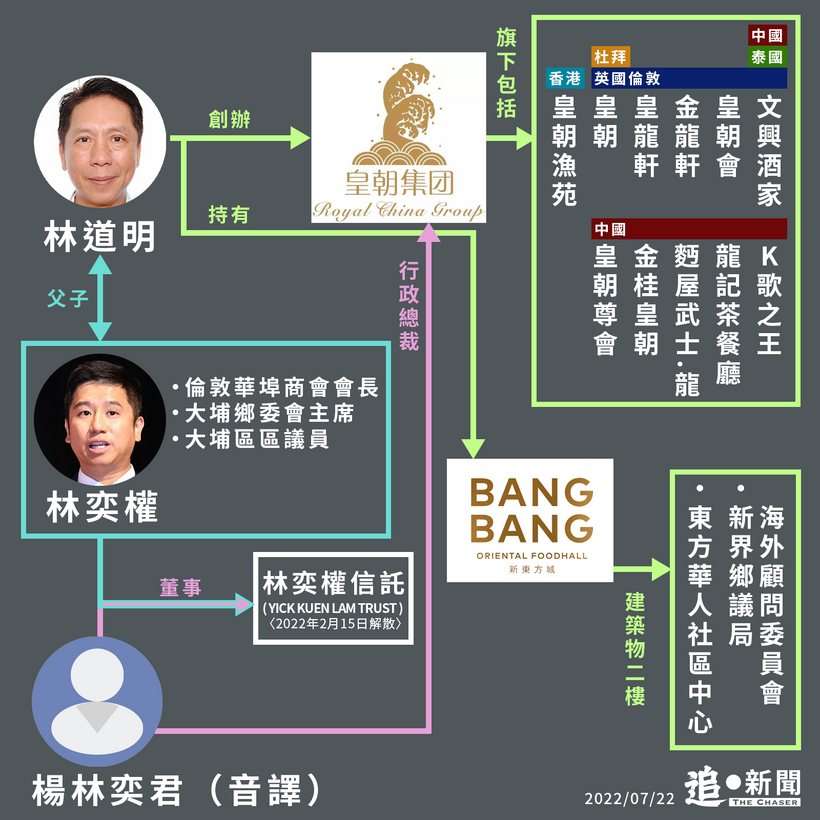 另外,鄉議局海外顧問委員會的會址也位於新東方城內,翻查港媒《星島日報》去年3月16日的報道,鄉議局歐洲聯絡處去年3月7日邀請倫敦經貿辦的羅莘桉、副處長黃凱鈴及袁松彪,在新東方城就「說好香港故事」、港府「搶人才」計劃進行交流,當時林道明也在場。根據其網站,委員會過去曾發聲支持港府修訂逃犯條例、支持港區國安法及中央落實愛國者治港。