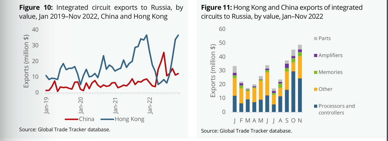 彭博社(Bloomberg)與C4ADS日前合作的調查報道,亦發現有香港公司出口受禁的半導體零件到俄羅斯。涉事的德州儀器(Texas Instruments Inc.)及亞德諾半導體(Analog Devices)均稱對該些出口毫不知情。