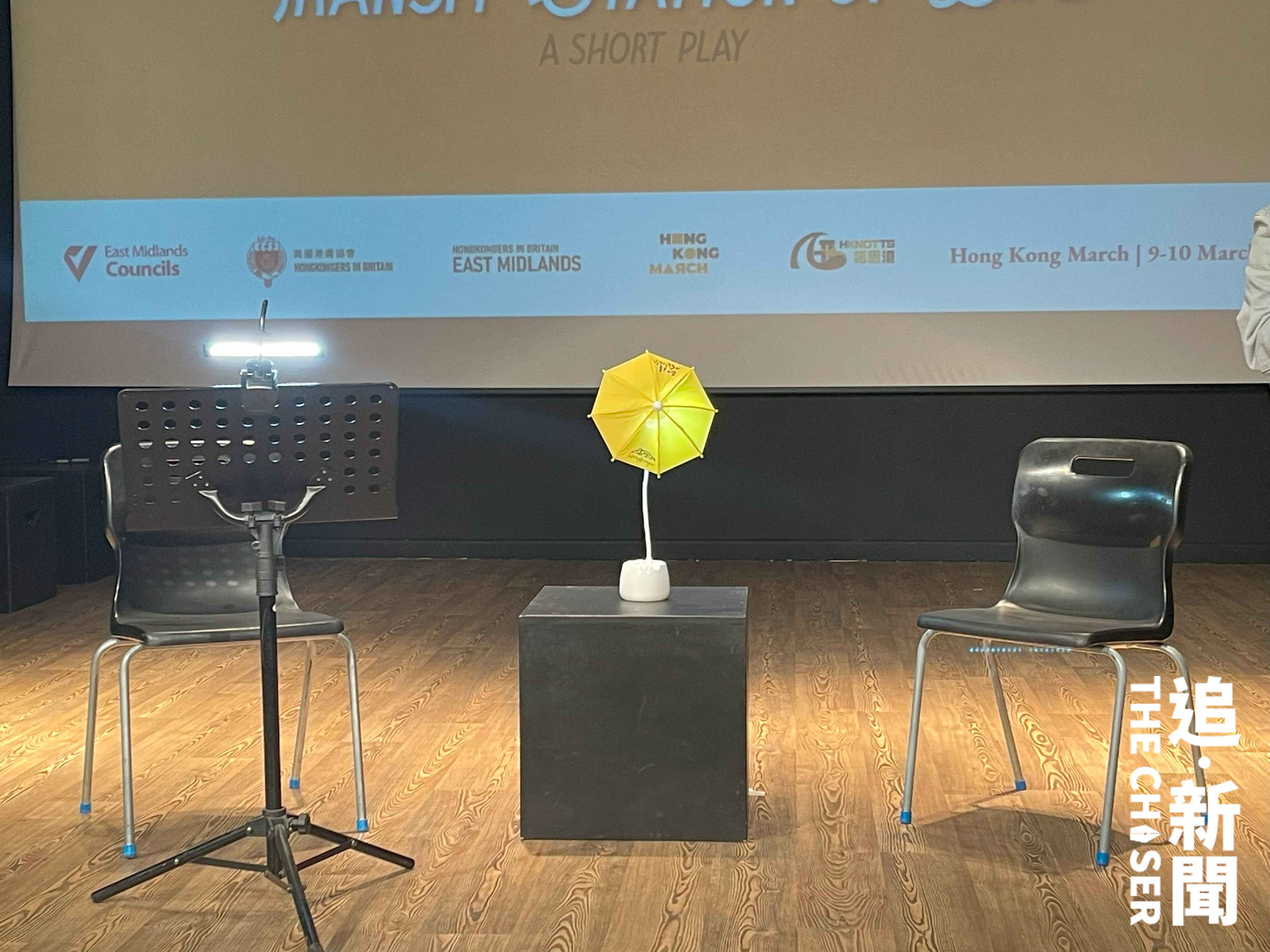 2024年3月10日下午2時46分,距離香港9,689公里的英格蘭中部諾定咸,在英港人團體諾思港等組織主辦的「港・文・俗」香港文化展覽閉幕禮表演節目上,香港粵劇工作者陳澤蕾與香港音樂學者余少華摒息對望,一張枱坐落兩人中間,枱上一盞燈,燈照亮黃傘。