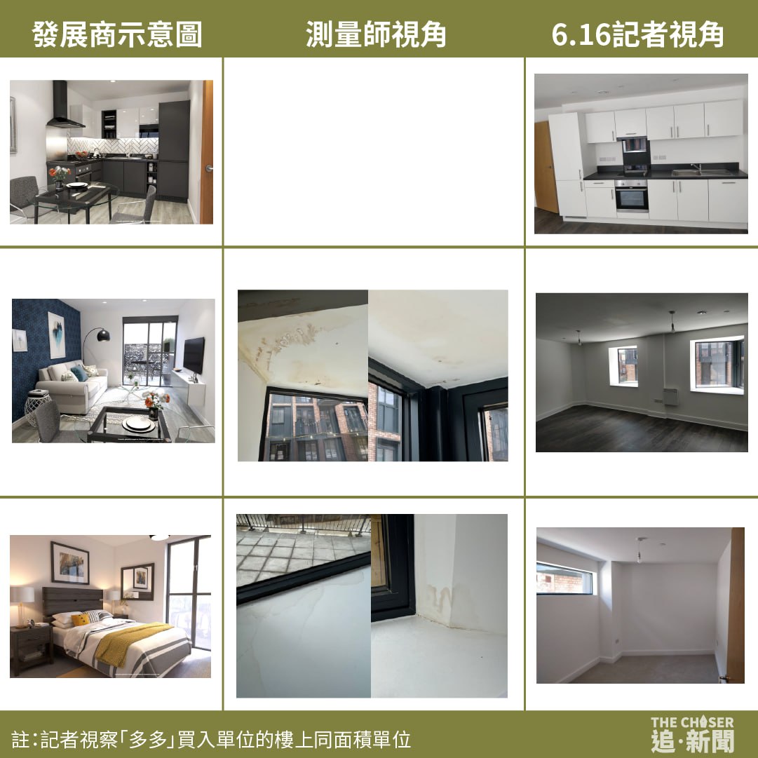 多多獲悉其購入的單位已放售後感到十分氣憤:「我哋由舊年12月到今年4月經surveyor睇過都係一個地盤,但你要我哋接受一個未合符規格嘅地方,已經係欺詐;佢(發展商)hold住我哋個deposit(訂金),又去搵另一個買家,我覺得好過份囉。」