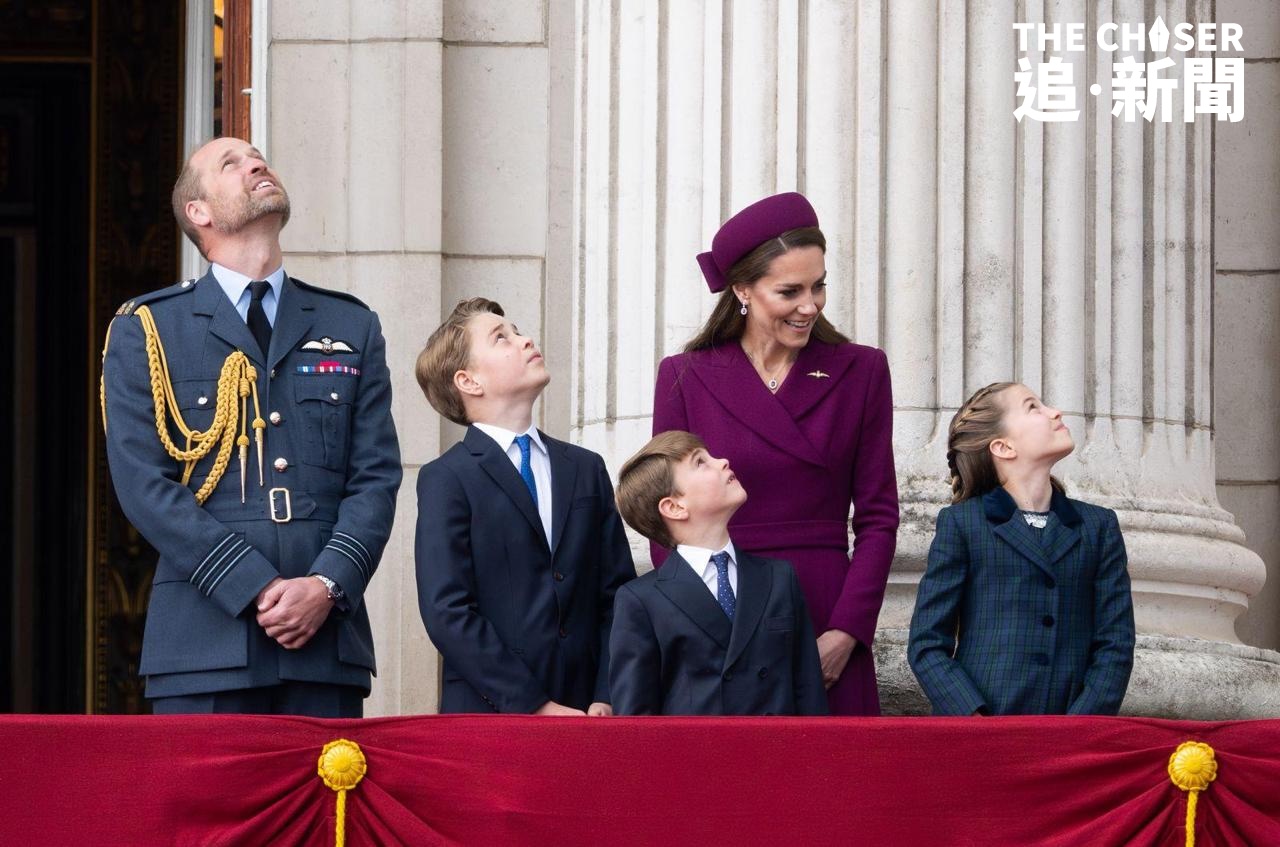 - 威廉皇儲一家觀看皇家空軍飛越白金漢宮一刻。(Credit: FPA)