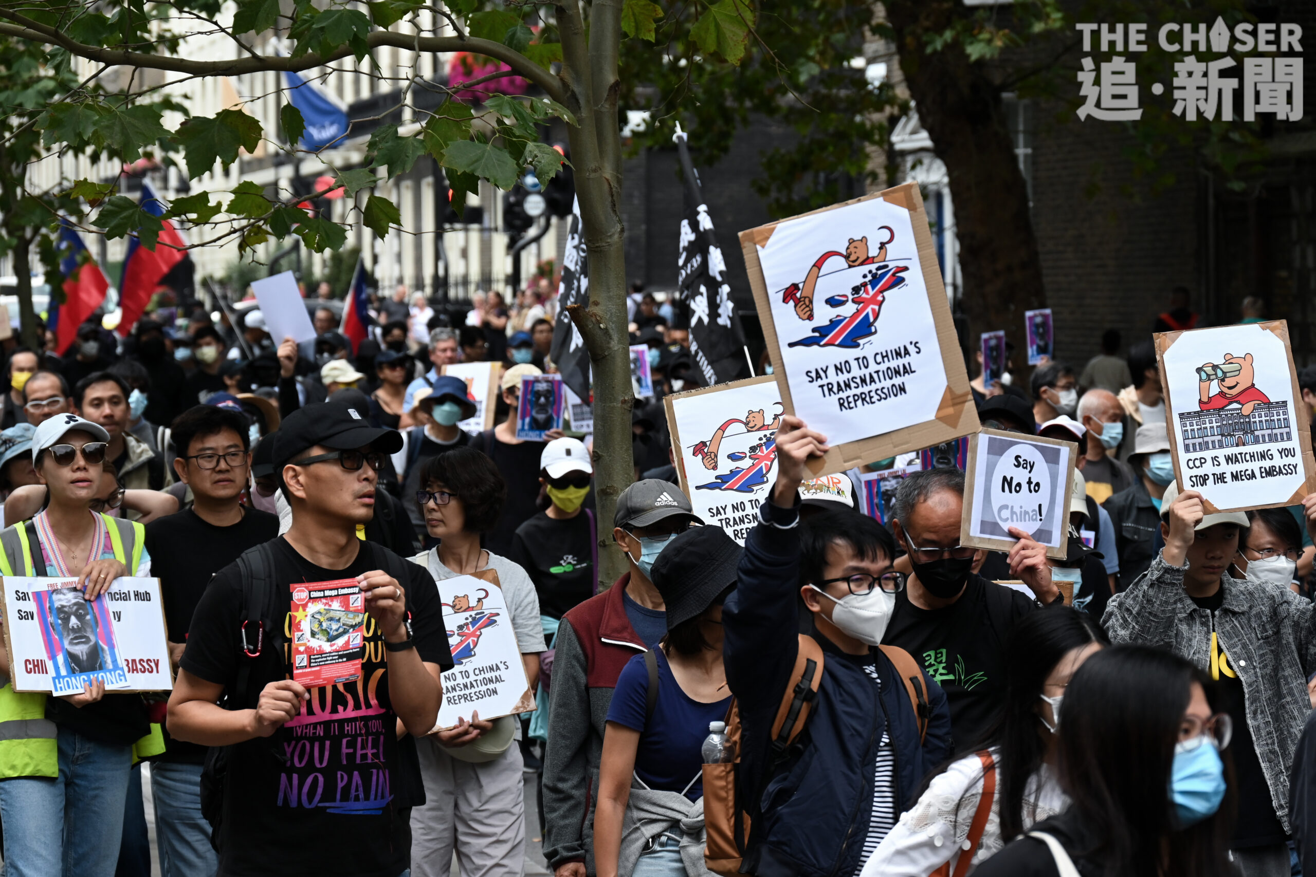 遊行起步前先有多名大會嘉賓發言,包括曾於「709大抓捕」被羈押後流亡英國的中國維權律師講述被中共迫害的遭遇,以及一旦英國政府批准中共興建「超級大使館」,流亡人士以至英國整體所面臨的國安風險;亦有英國本地聲援者在發言尾聲帶領參加者高叫「CCP,go back to hell(中共返落地獄)」,成為今次遊行期間不斷出現的口號。