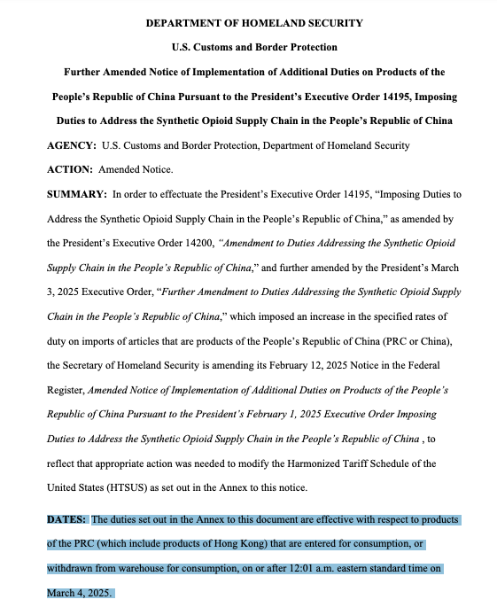 中美貿易戰持續升溫,美國再對中國輸美產品加徵10%關稅,根據《自由亞洲電台》於上月翻查美國國土安全部、海關及邊境保衞局共同發出的政府文件顯示,美國上月對中國所有進口商品加徵10%關稅,當中首次表明所有由香港製造、進口及轉口的商品與中國產品一樣,都要正式報關及加徵關稅。《追新聞》翻查網站,美國海關及邊境保衞局已更新指引,額外關稅將包括中國大陸及香港出口的產品,部份更追溯至美國時間2月4日出貨產品。雖然美國早前一度取消「小額豁免」(de minimis exemption)包裹免稅安排,但最新指引暫未取消有關豁免。