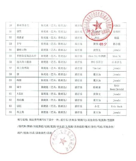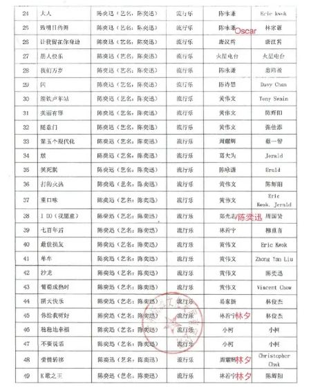 - 陳奕迅歌單批文