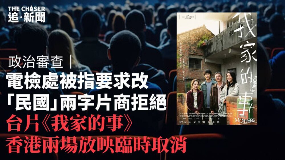 榮獲紐約亞洲電影展最佳劇情片的台灣電影《我家的事》,被指因香港電檢處要求修改片中畫面用字,片方為保持作品完整無法配合修改,主辦香港夏日國際電影節2025年的香港國際電影節協會周二(5日)宣布,該電影兩場在港的放映取消,外界關注影片是否因片中演員藍葦華參演中共侵台話題台劇《零日攻擊》而遭封殺。原訂赴港出席放映的導演潘客印周三澄清,取消放映和演員無關。台媒揭露,被要求修改的是片中出現「民國」2字。