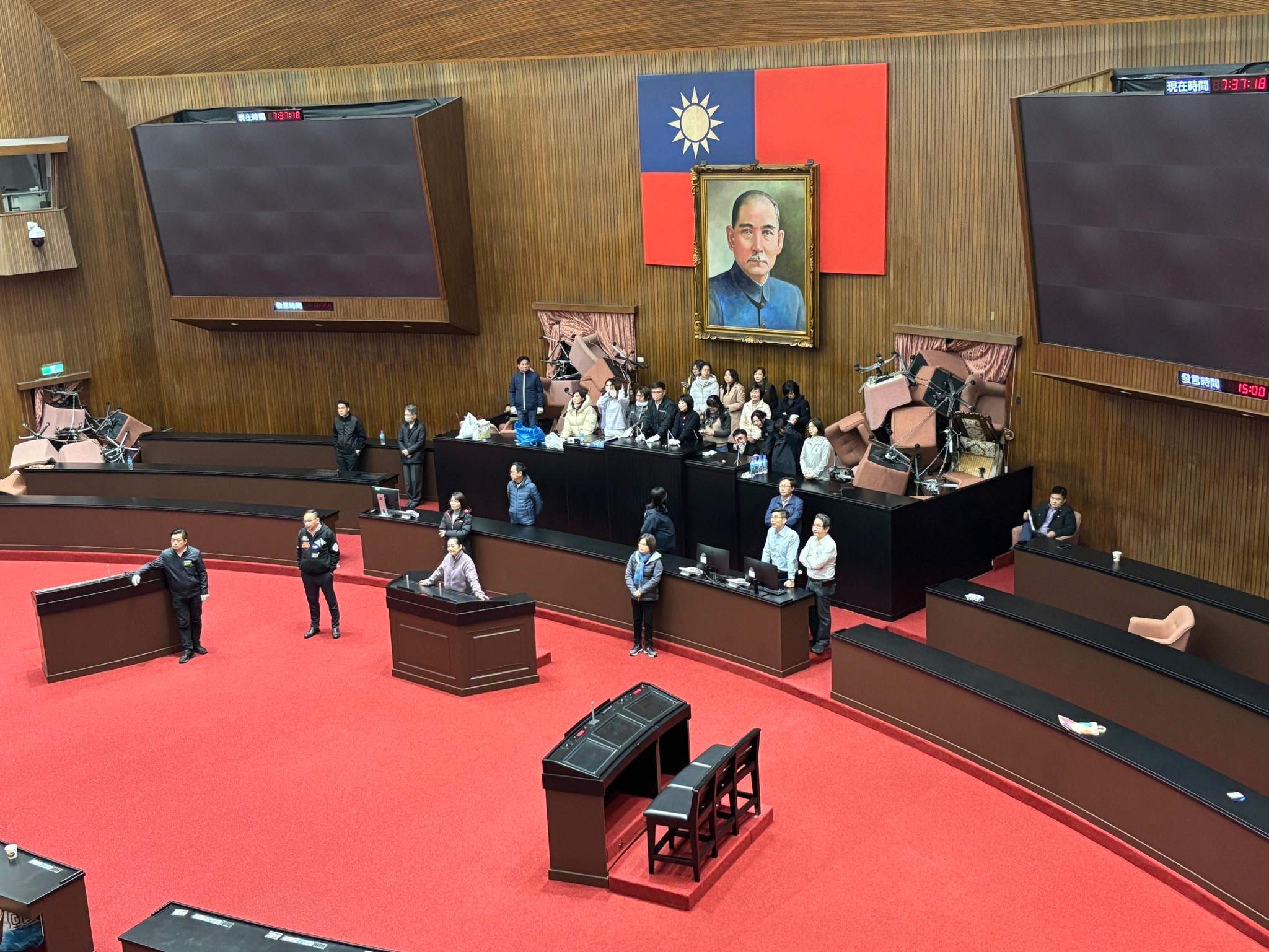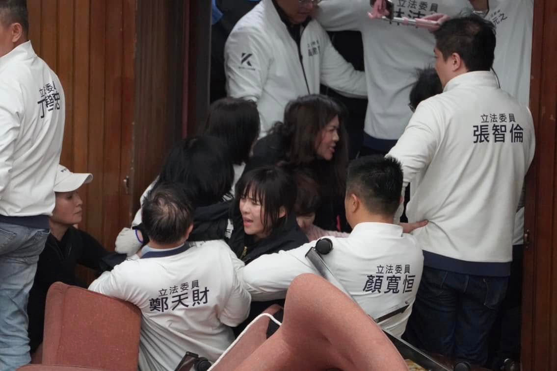民進黨多名立委在周五凌晨進入立法院佔領主席台及通宵留守,並以超能膠封死議事廳大門,希望阻止國民黨與民眾黨立委進入。惟人數佔優的國民黨立委在周五早上9時許成功突破封鎖並衝進議事廳,期間藍綠立委互相拉扯、推撞及潑水,場面非常混亂。據台灣中央社報道,民進黨立委林楚茵、陳培瑜在衝突中受傷送院。陳向傳媒哭訴被4名國民黨立委拖出主席台後壓在地上一直踩她,令她左腳瘀青。另一民進黨立委林宜瑾在社交平台展示染有血迹的外套,稱自己在衝突中受傷。