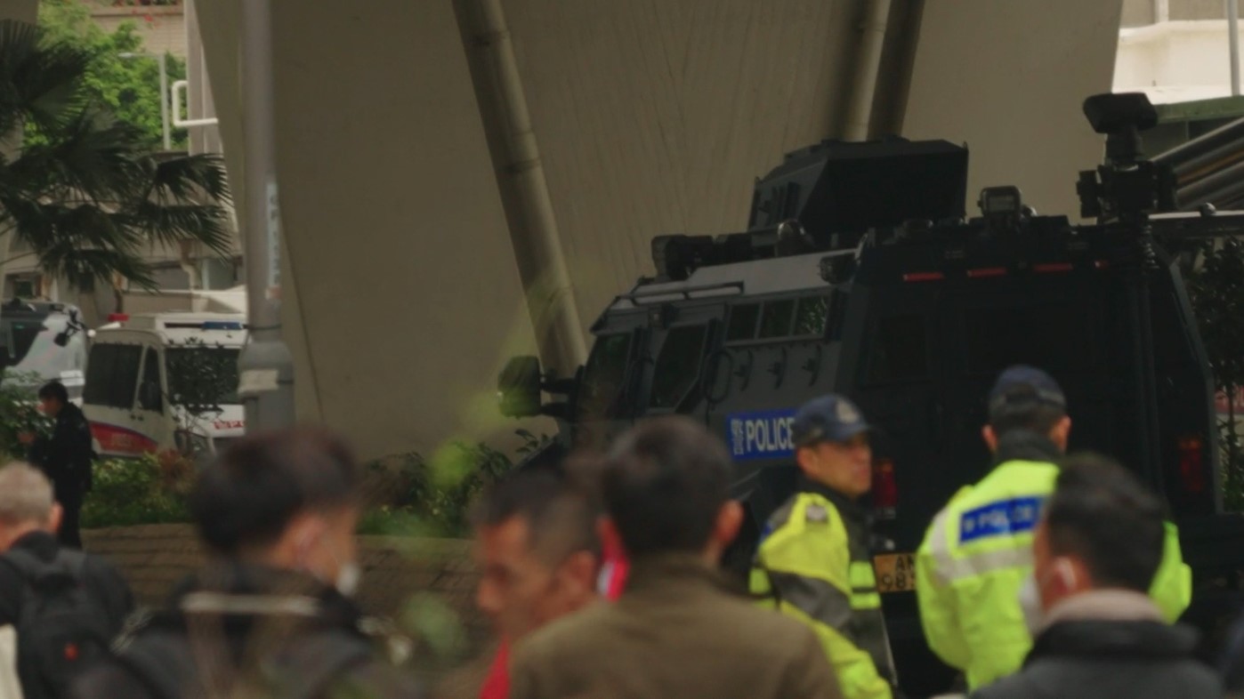 保安局局長鄧炳強上周已經預告要針對「旁聽師」及「送車師」,會在西九龍裁判法院增設X光機檢查進入法院的人士,包括被告、旁聽人士及律師都需要接受檢查。據中國富豪馬雲旗下的《南華早報》引述知情人士指,警方在西九龍裁判法院部署了1,000警力,以便有足夠人手處理任何突發情況。《追新聞》現場所見,警方在法院一帶嚴密布防,單是法院門外一段通州街,估計最少有200名便衣及軍裝警員在駐守、巡邏;通州街天橋底亦停泊多部警車,除了派出「劍齒虎」裝甲車及荷槍實彈的反恐特勤隊人員戒備,又有爆炸品處理組人員在場候命。