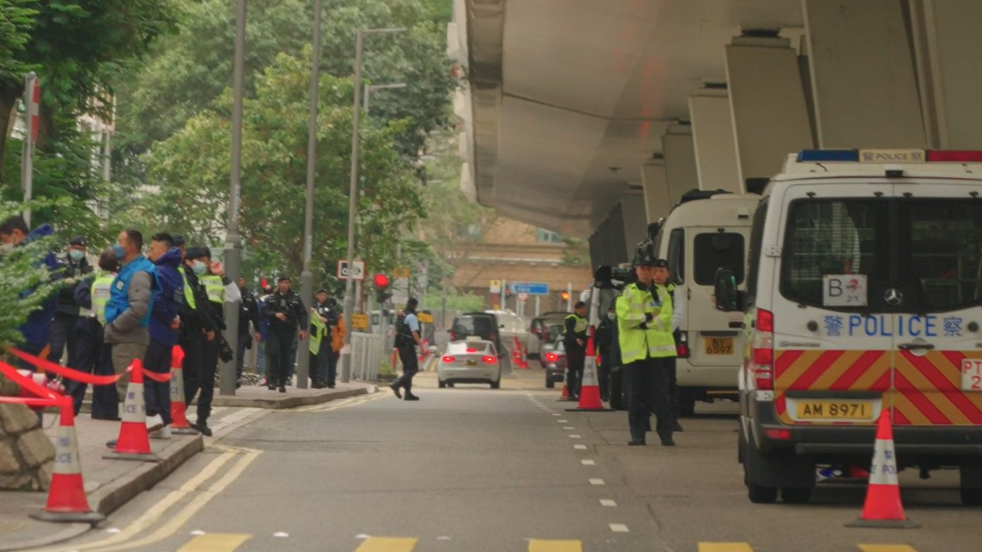 76歲壹傳媒創辦人黎智英的國安案件在他被還押三年後終於開審,作為港共政權眼中的「頭號重犯」,當局在西九龍裁判法院部署了一千警力駐守。《追新聞》周一(18日)開審首天在庭外直擊,估計單是法院門外的一小段通州街,就有200名軍裝及便衣警員,名副其實「五步一崗,十步一哨」。即使是黎智英據傳目前被囚禁的荔枝角收押所,警方亦派人到附近山坡要求希望拍攝到黎智英身影的傳媒離開。