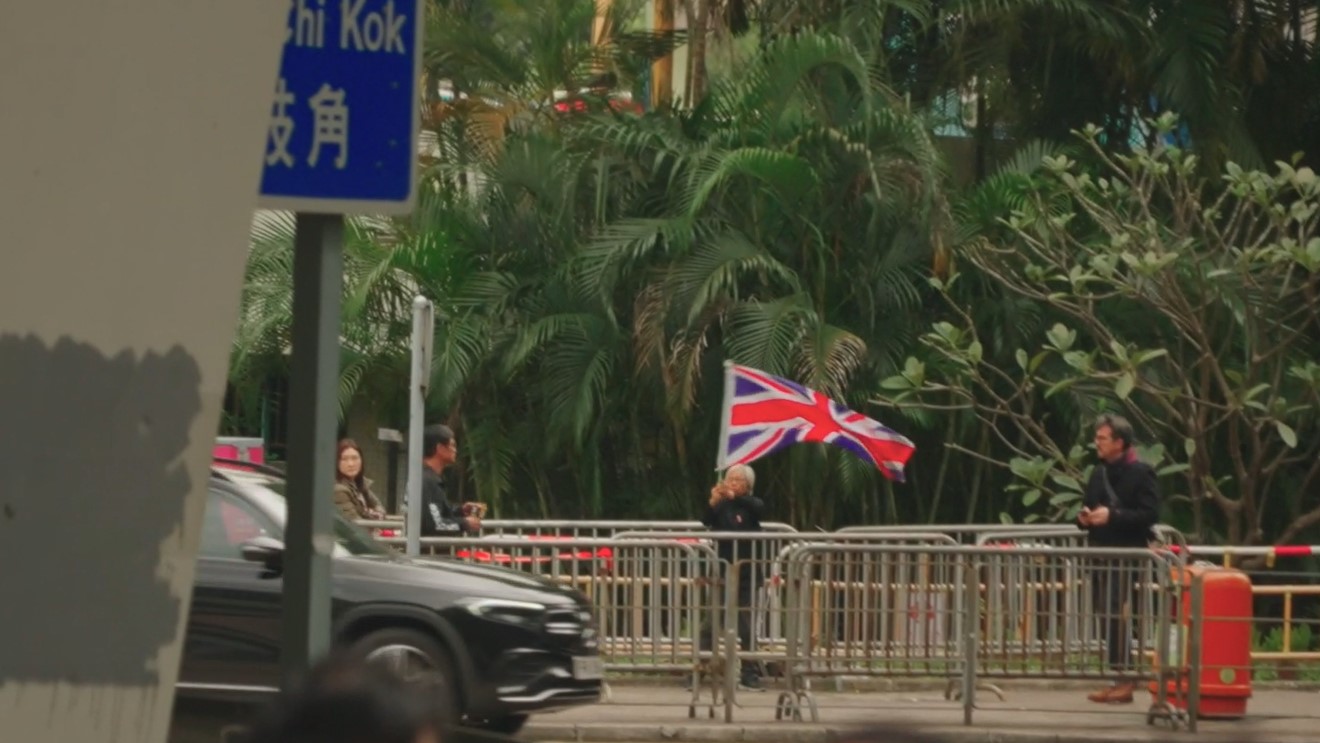 「王婆婆」王鳳瑤早上有到場聲援黎智英,但旋即被警員帶到對面相距甚遠的行人路,被限制在由鐵馬圍起的「示威區」內活動。雖然如此,她仍一個人揮舞英國旗,有便衣警員在旁監視。前來旁聽的民主黨前主席劉慧卿表示,希望黎智英的審訊能夠公平公開,讓國際社會知道香港仍是法治社會、司法獨立。