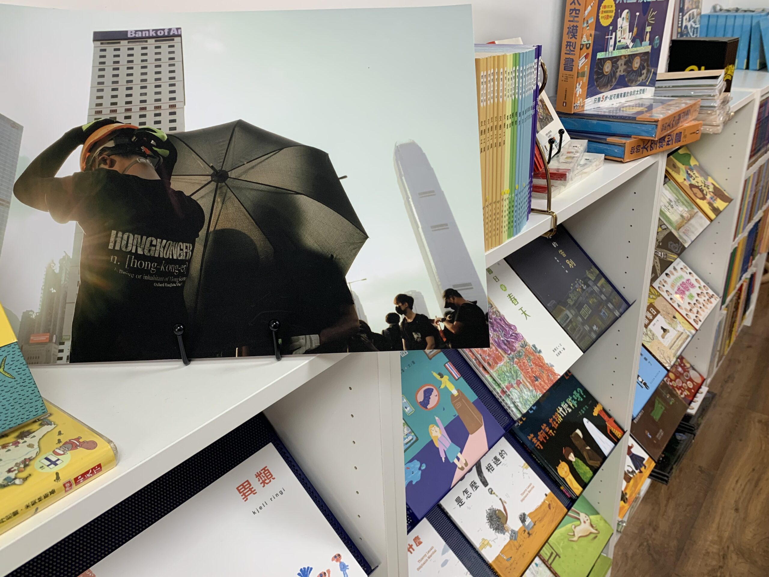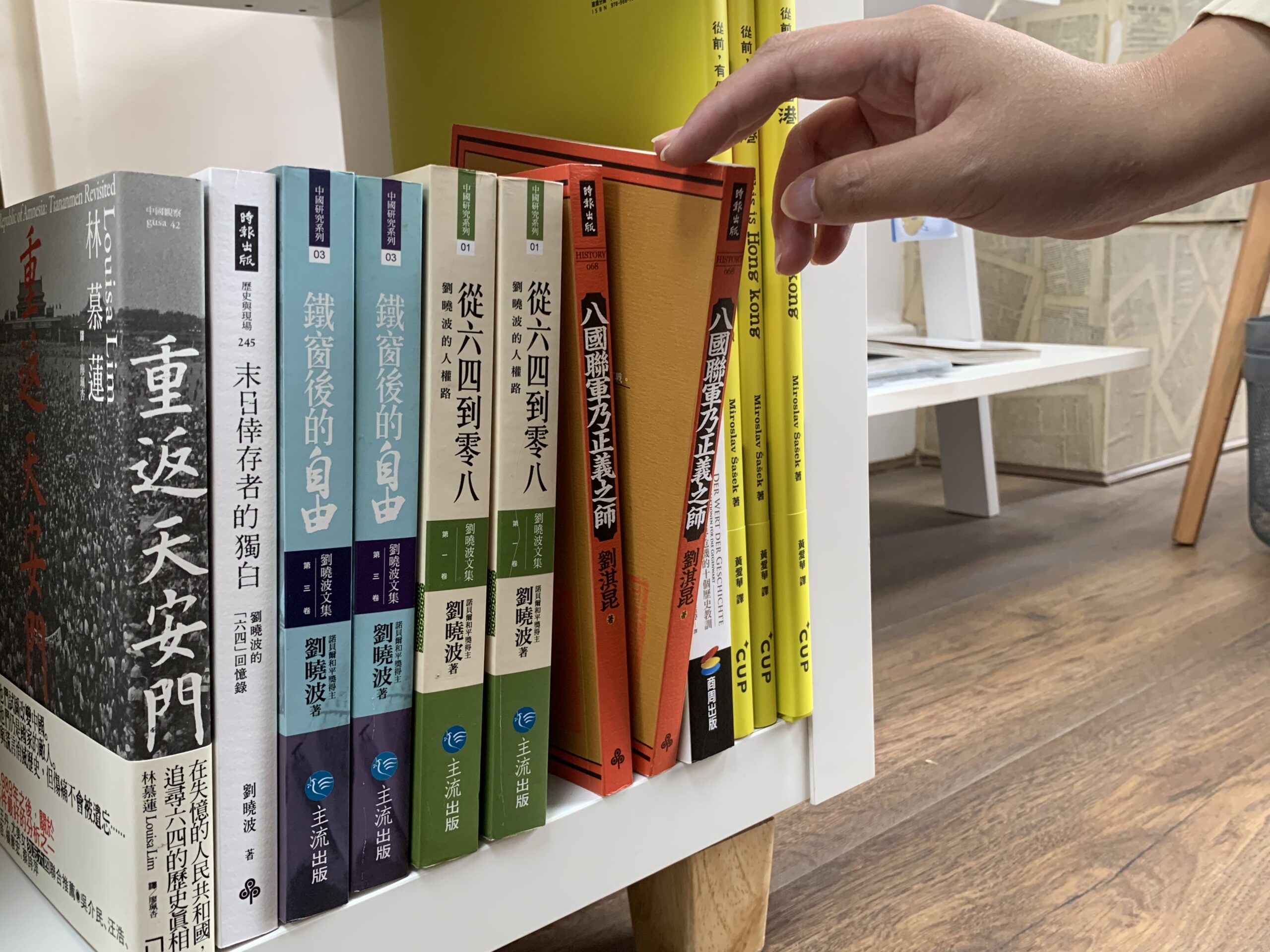 它位於香港文學、香港思想、香港歷史書架的下方,放有《重返天安門》、《末