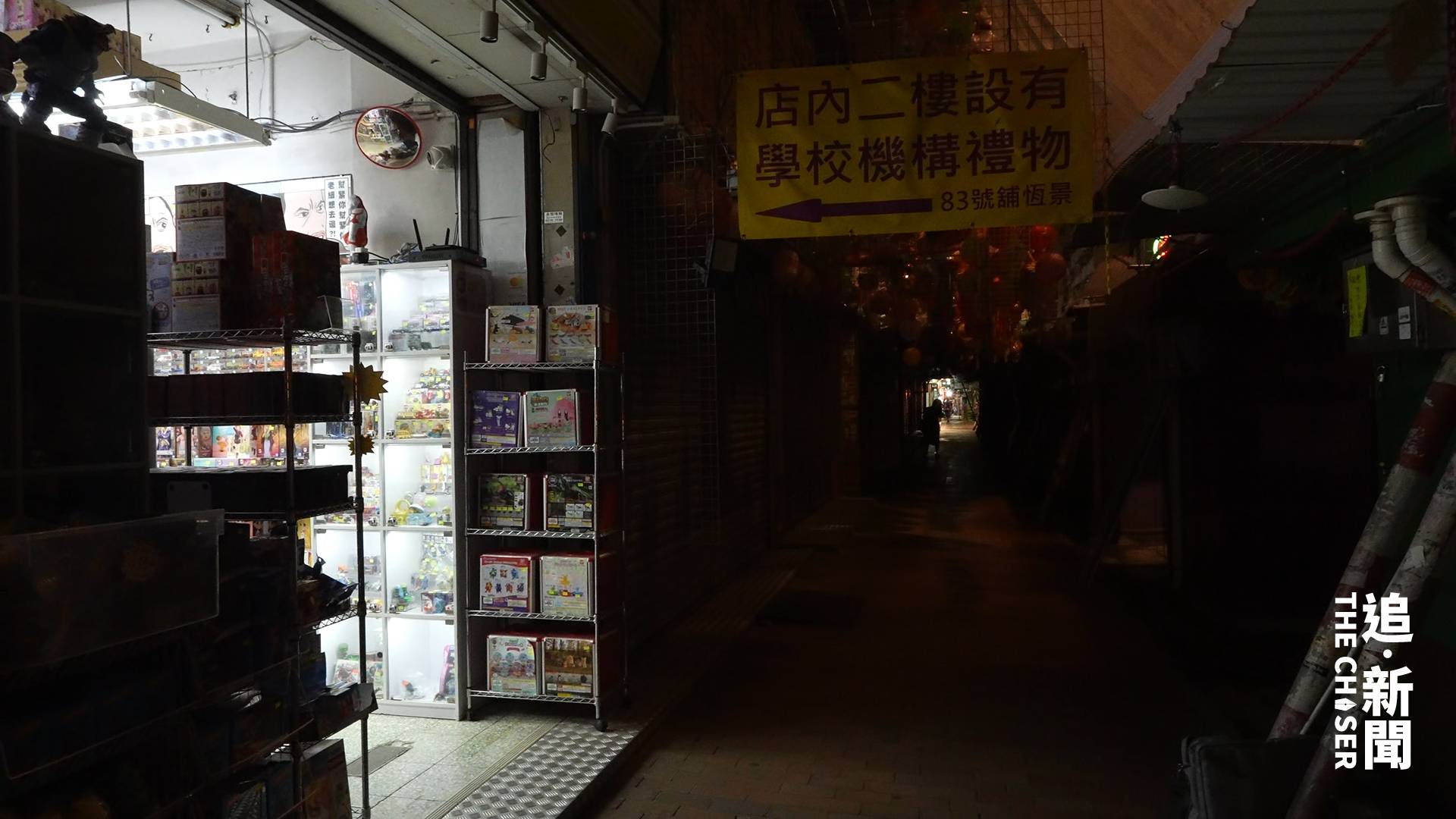當晚約8時半,記者跟Lance行到玩具街(福榮街),附近一帶商舖已經烏燈黑火,只有一間店舖還未關門,玩具店負責人謝先生表示,店舖開了3年多,晚上的生意明顯不及疫情前,「有客都會做,但實在係冇客」。年初開關後,生意更明顯轉差,形容9月份生意「更加差得緊要」。