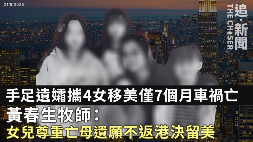一名手足遺孀今年一月幾經辛苦終於帶著女兒從台灣以難民身份移居美國,近日卻在德州遇上車禍,當場喪生,遺下4名7至16歲的女兒。協助該名「香港媽媽」多年的台灣牧師黃春生向《追新聞》表示,4姊妹昨天一直哭,無法接受母親離世。他指出,女兒希望尊重媽媽的心願,因此不會返回香港,決定留在美國,希望可被同一家庭收養,4姊妹共同進退,不用各散東西。