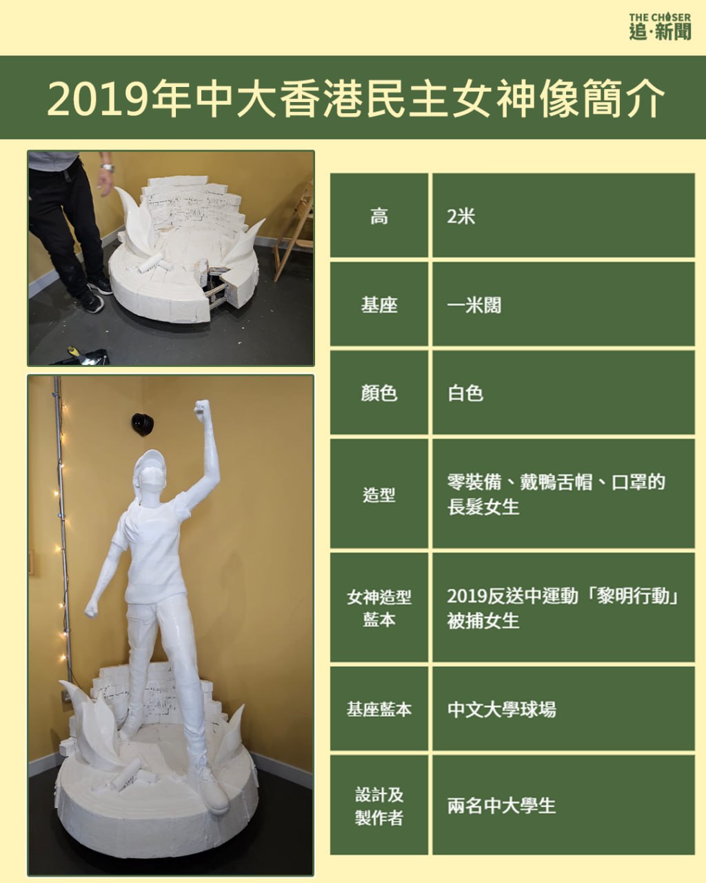 安德烈森指出,香港自由民主女神像團隊分別協助當時在香港作交換生的德國學生以及兩名中大生,製作全球民女像以及中大香港民女。全球香港民女及中大香港民女造像或有不同,但物料大致相同。