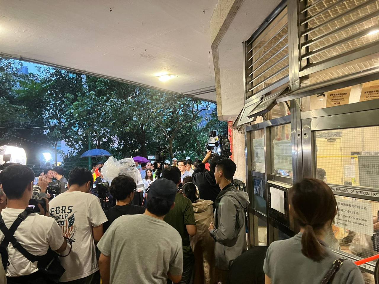 ▲李家超到耀東邨視察,大批傳媒在場採訪。(讀者提供圖片)