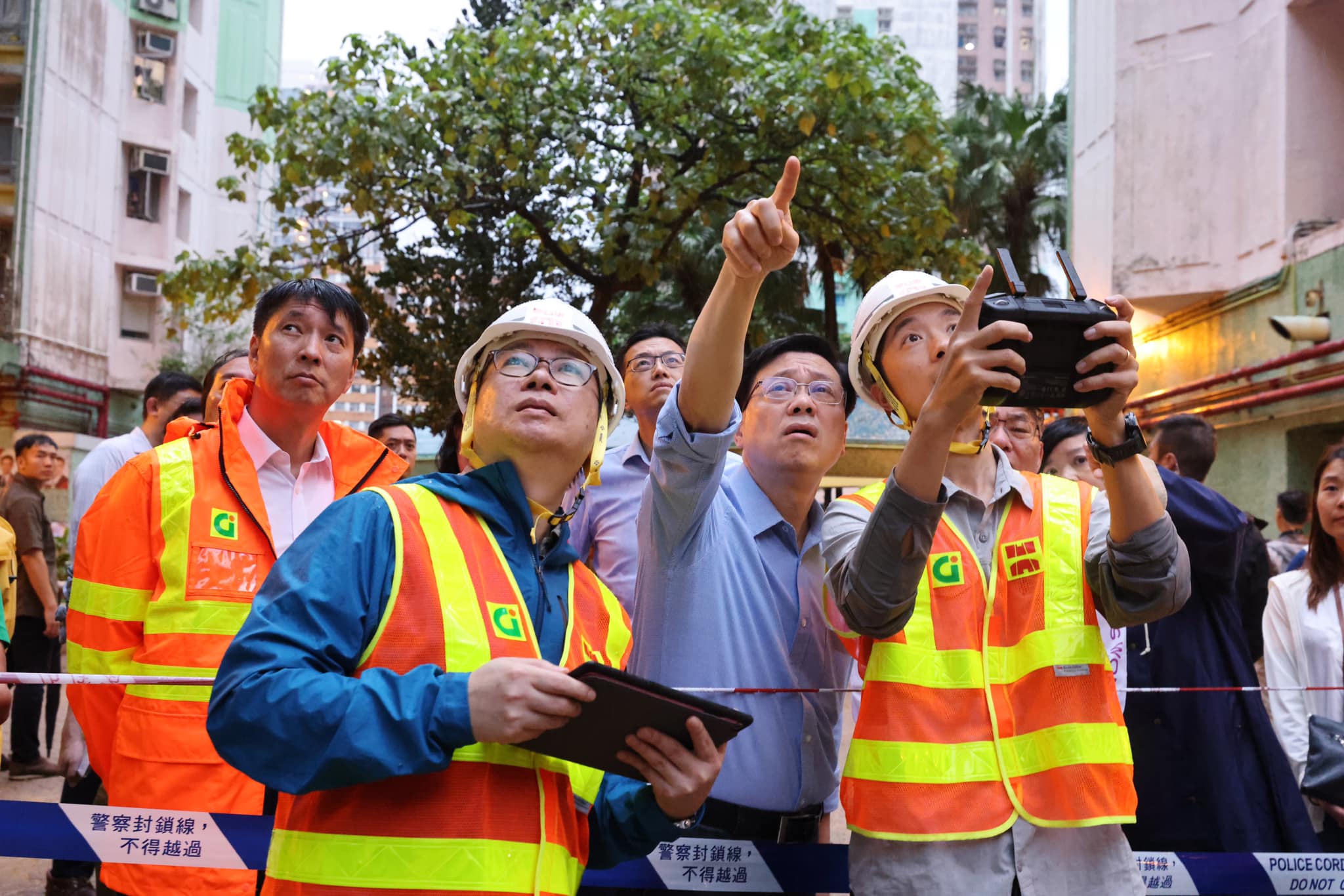 ▲李家超下午落區視察,一臉煞有介事的模樣。(李家超Facebook圖片)