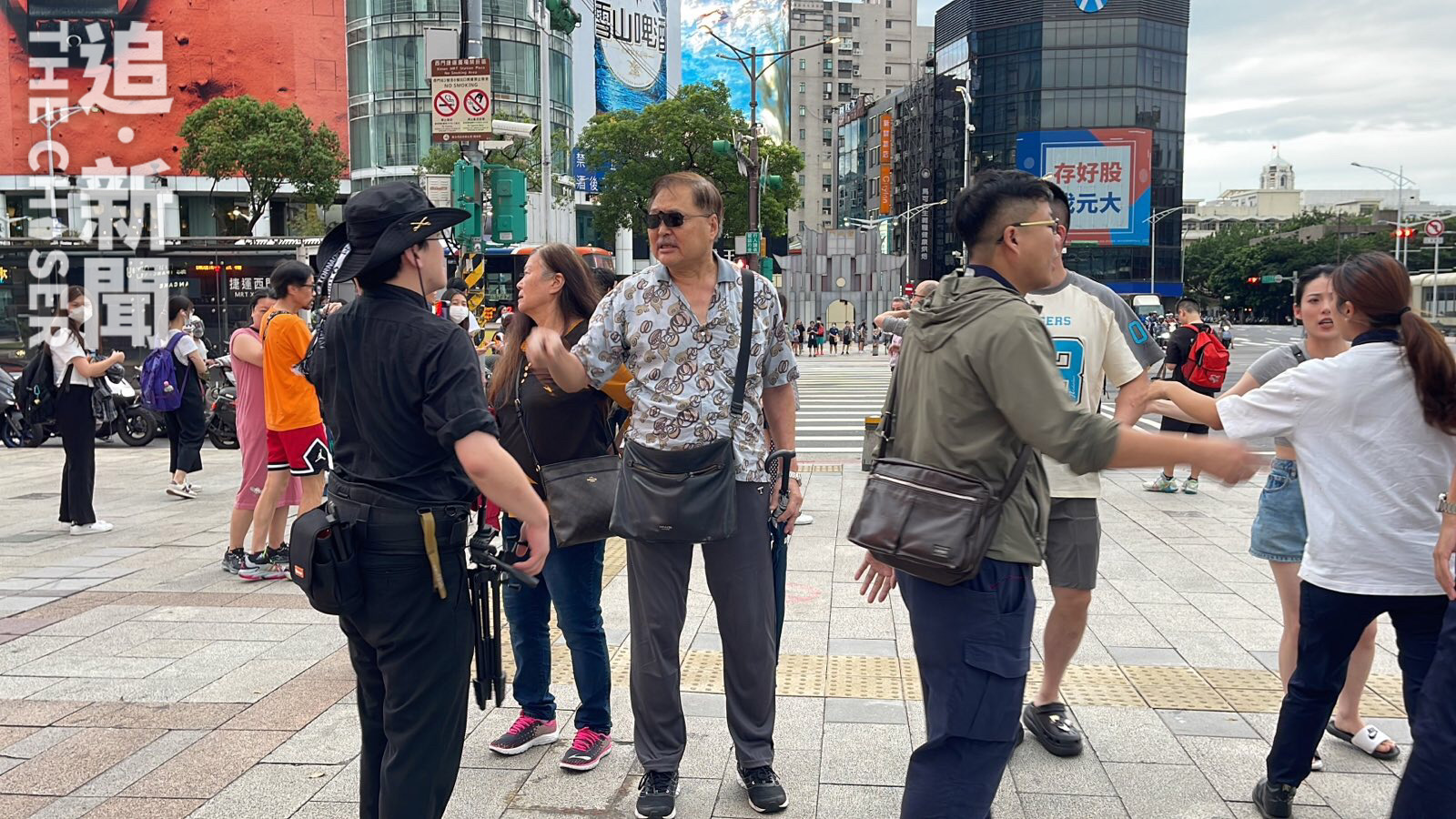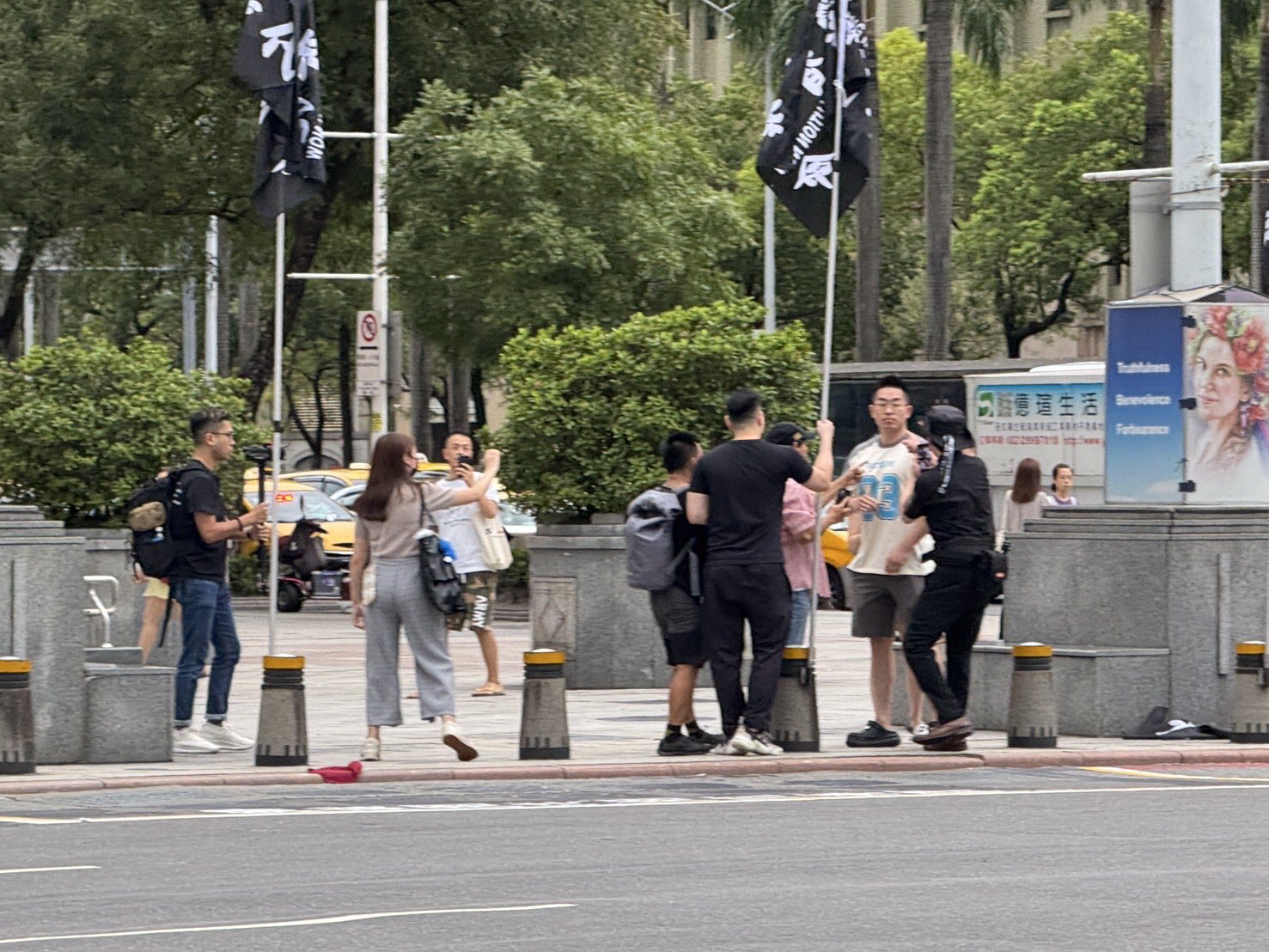 包括便衣警在內的多名台灣警員介入。赴湯向警方表示,有人拆走集會旗幟。台警勸諭大家停止口角,有港人情緒激動,表示小粉紅來自「敵對國」,中國男子反駁香港是中國一部份。在台警護送下,該名男子及同行女子離開現場。