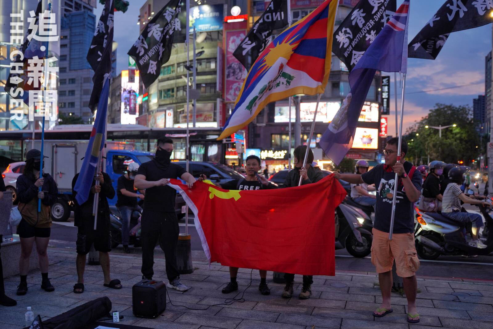 中共建政75周年,在台港人周二(1日)在台北鬧市西門町發起「十一國殤」集會,但集會未開始前即受到「小粉紅」滋擾、挑釁。一名中國男子將集會多面「光復香港,時代革命」旗幟拔走,丟落地下;並高叫「台灣、香港都是中國的一部份。」集會發起人、在台港人「赴湯」湯偉雄要求男子停止破壞,反駁「台灣是台灣人的,香港是香港人的。」包括便衣警在內的多名台警介入,勸止雙方停止口角,該名男子和同行女子最後在台警陪同下離開現場。赴湯之後在集會回應事件:「如有人不認同我們,可跟我們講,不是來破壞;如他們認為民主自由不重要,可回去沒有民主自由的地方。」