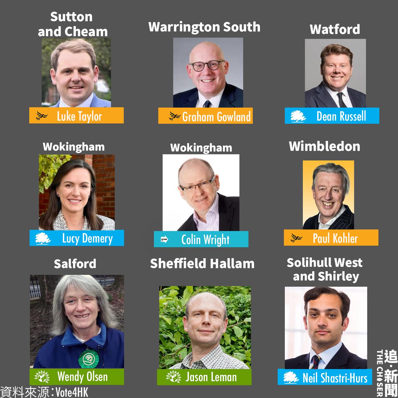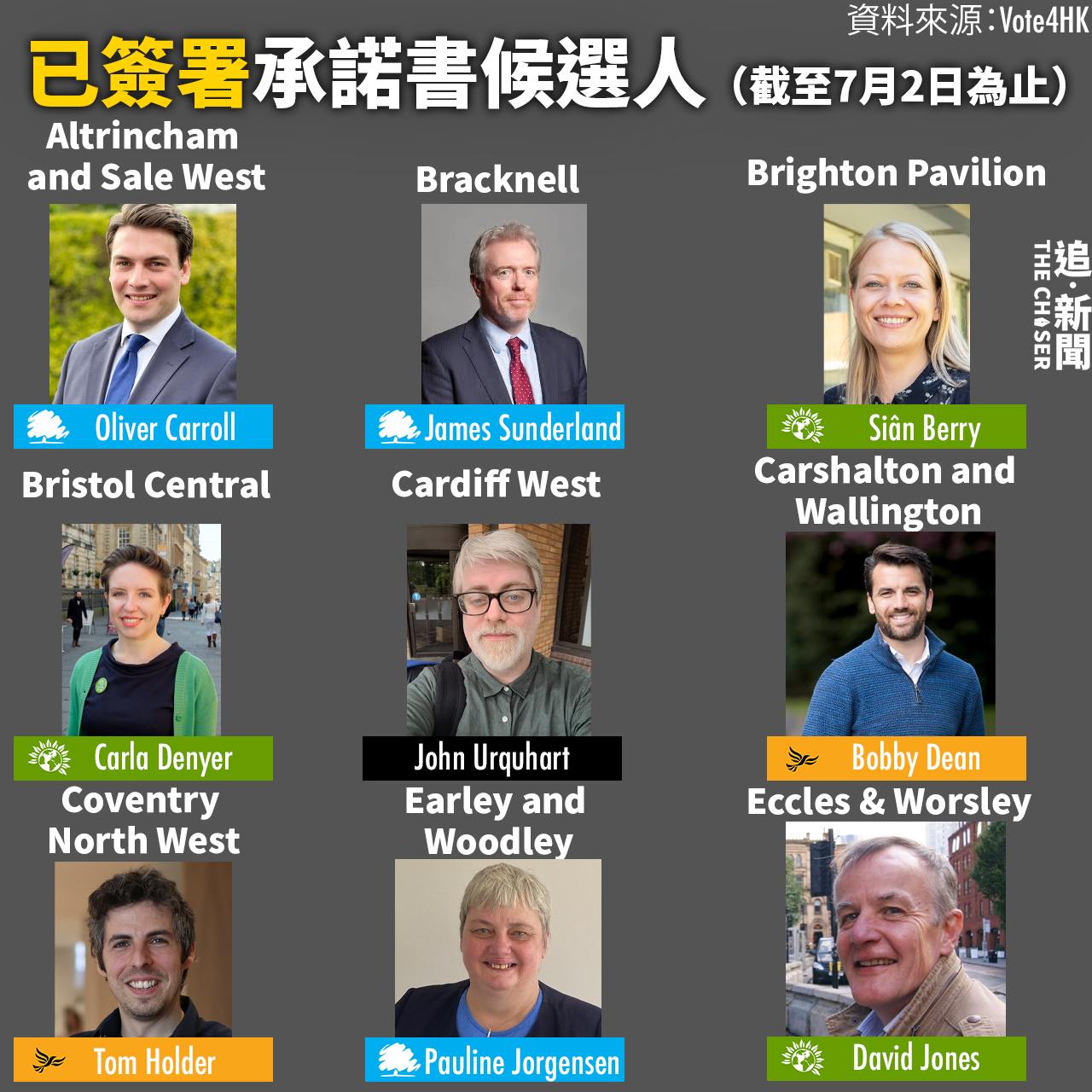 英國七月四日大選將至,在英港人組織Vote for Hong Kong(V4HK)邀請英國國會候選人簽署承諾書和回應立場申述問題,有超過41個選區、52名候選人簽署承諾書或另外發表聲明以示其支持香港。簽署名單包括保守黨、自由民主黨、綠黨、英國改革黨,以及獨立候選人,亦有來自工黨和其他黨派的候選人另發聲明以示支持香港。