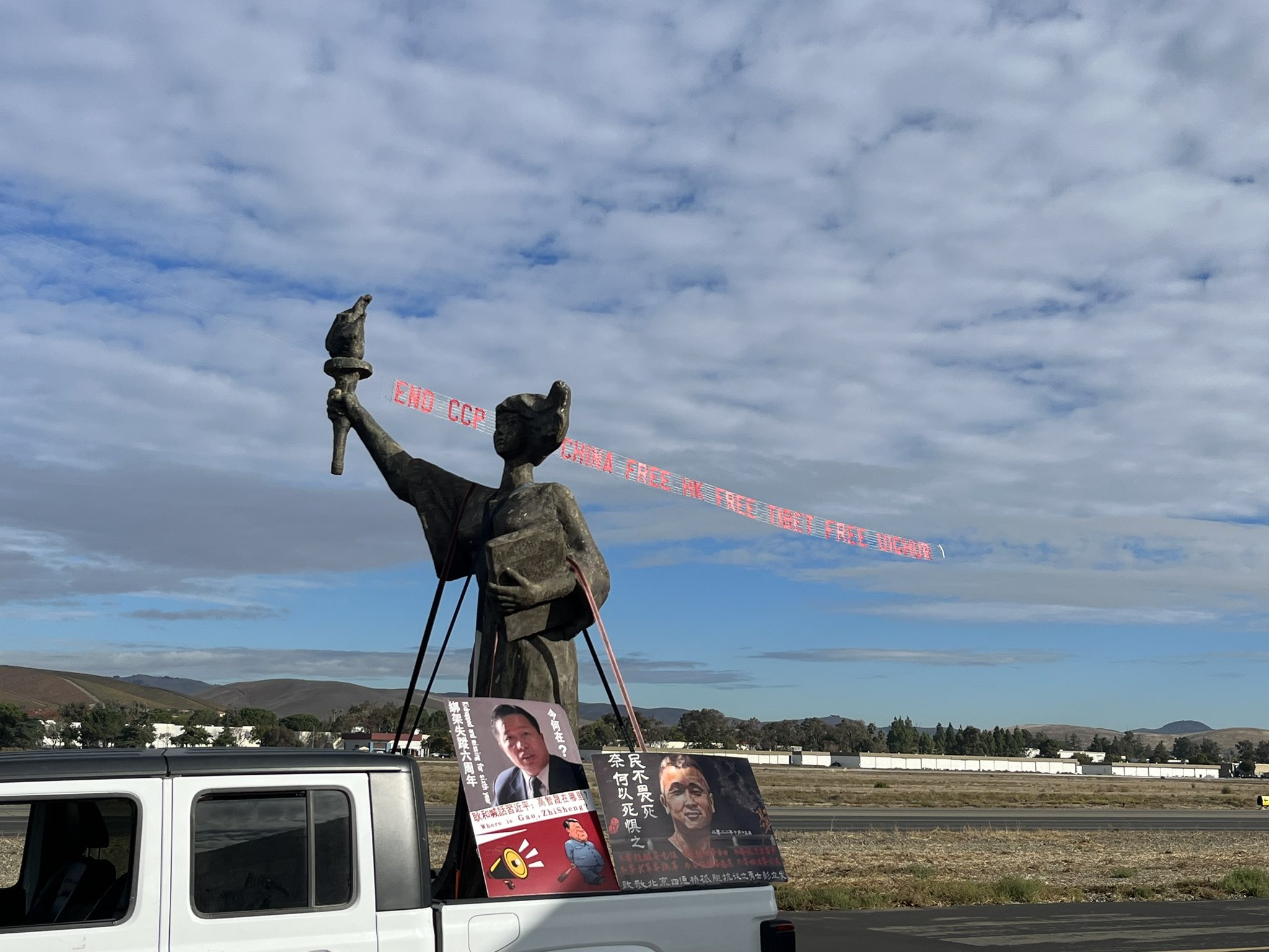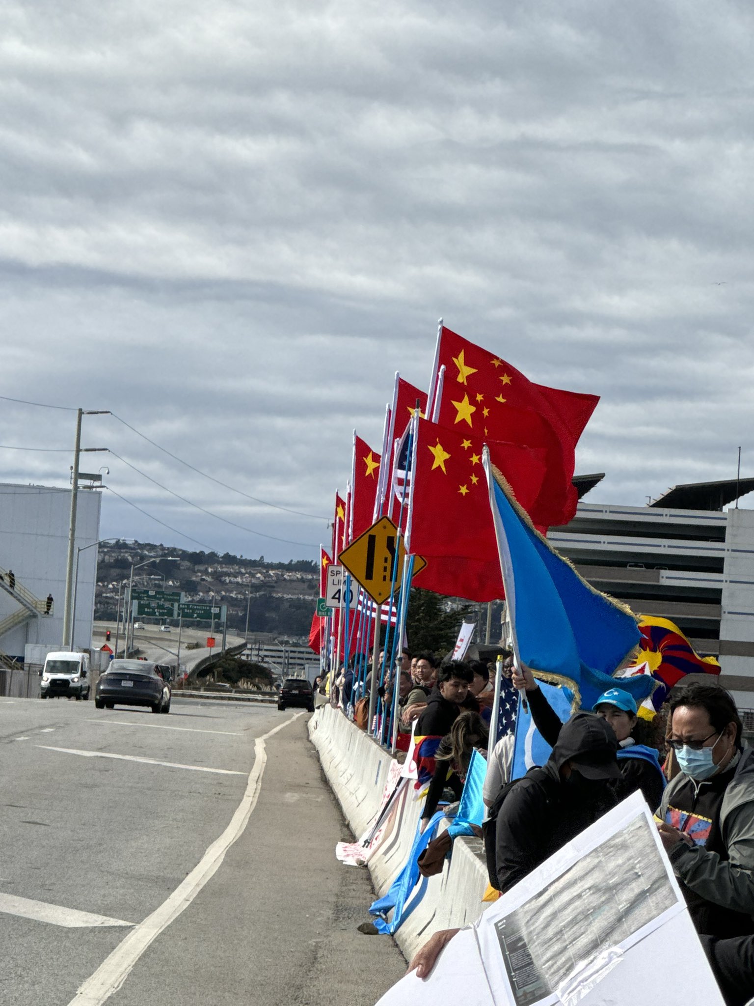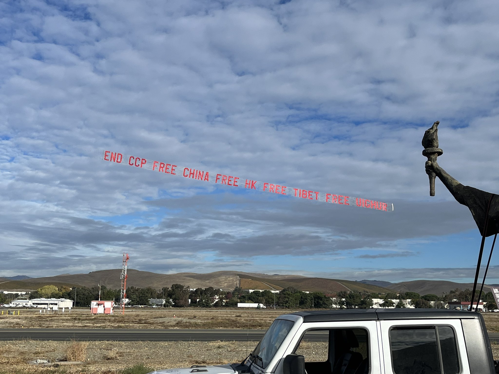 APEC峯會在美國三藩市舉行,美國總統拜登與副總統賀錦麗於三藩市時間下午1時許乘坐專機抵達三藩市,中國國家主席習近平於近下午3時抵達,而支持者與反共團體在機場對峙,警方加強警力部署。有反共團體租賃私人飛機,拉起「End CCP Free China Free HK Free Tibet Free Uighur(結束中共,自由中國、自由香港、自由西藏、自由维吾爾人)」巨型標語,現場多達逾300人抗議習近平到訪美國。