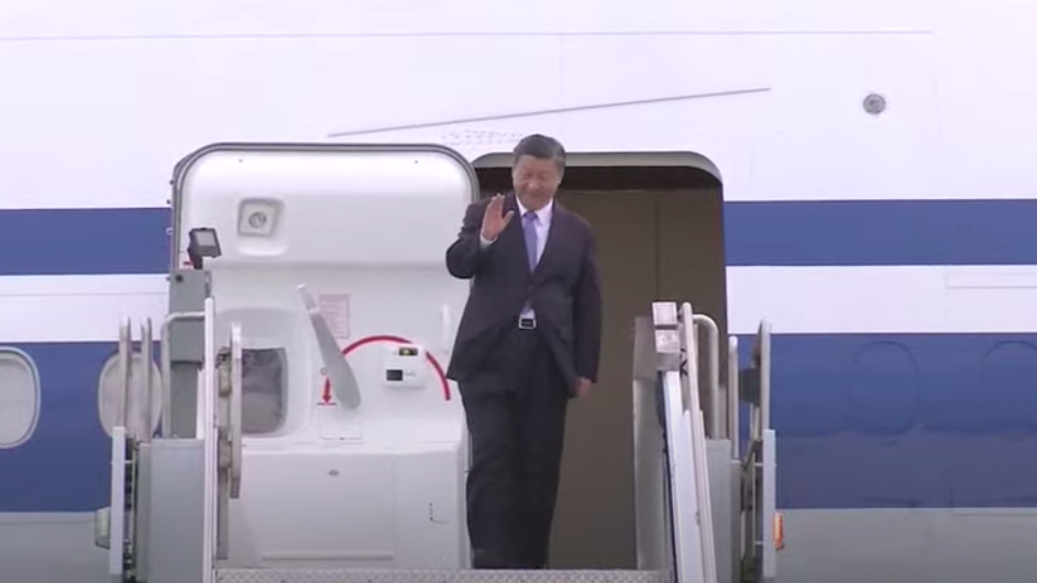 - 三藩市刮大風,習近平從專機步出時顯得步履不穩。
