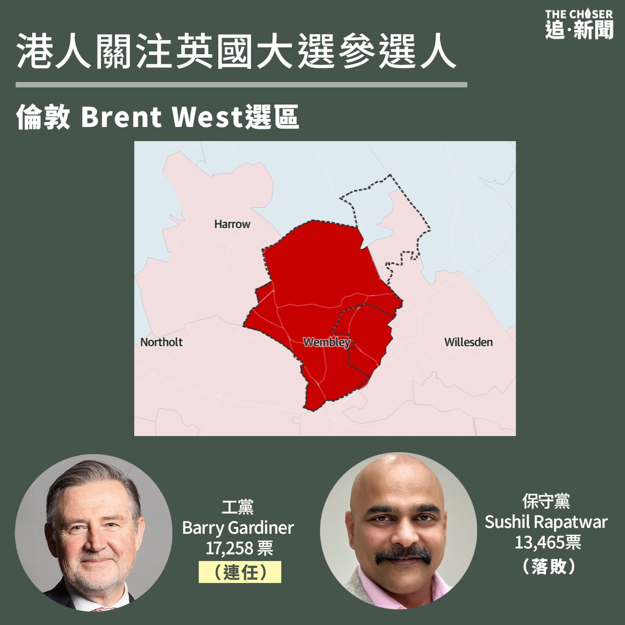 居住在Colindale的港人陳先生向《追新聞》記者表示,港人聚居的Colindale South歸入Hendon選區,今屆大選Hendon選區重新劃界,令到Edgware一大片保守黨票倉沒有納入Hendon。他說:「我做咗少少分析,睇返 hendon 新嘅邊界同對應選區過往投票結果,保守黨輸幾千或成萬票都得,但今次輸15票係有啲唔抵,(我哋)如果做多少少嘢就可能有唔同結果。」